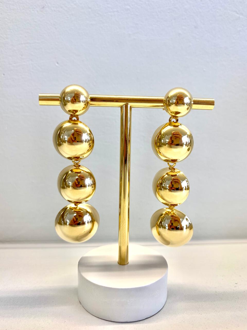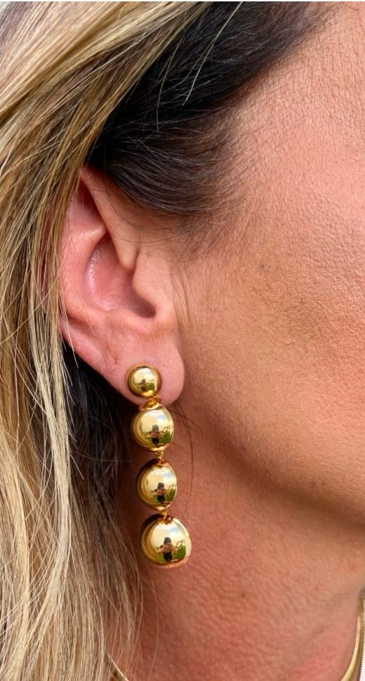 Brinco esferas banhado ouro 18k.