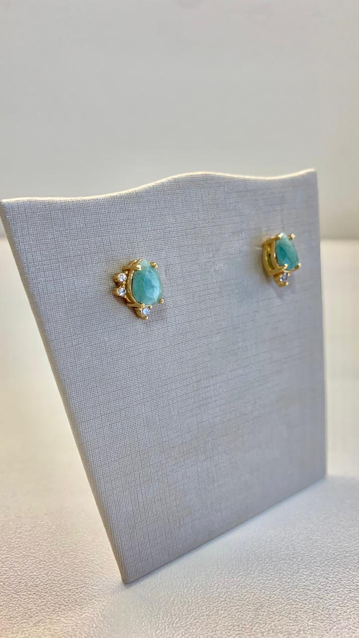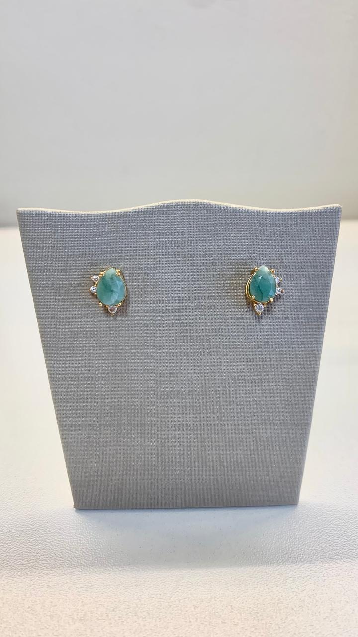 Brinco esmeralda e zircônias brancas, banhado a ouro 18k.