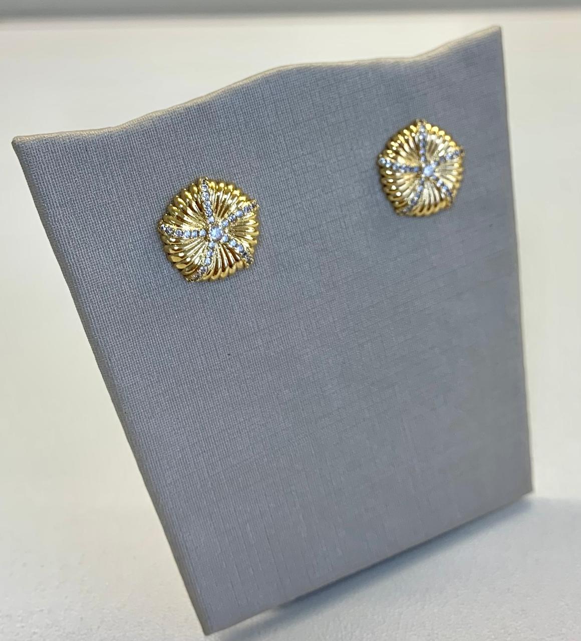 Brinco estrela com zircônia banhado a ouro 18k.