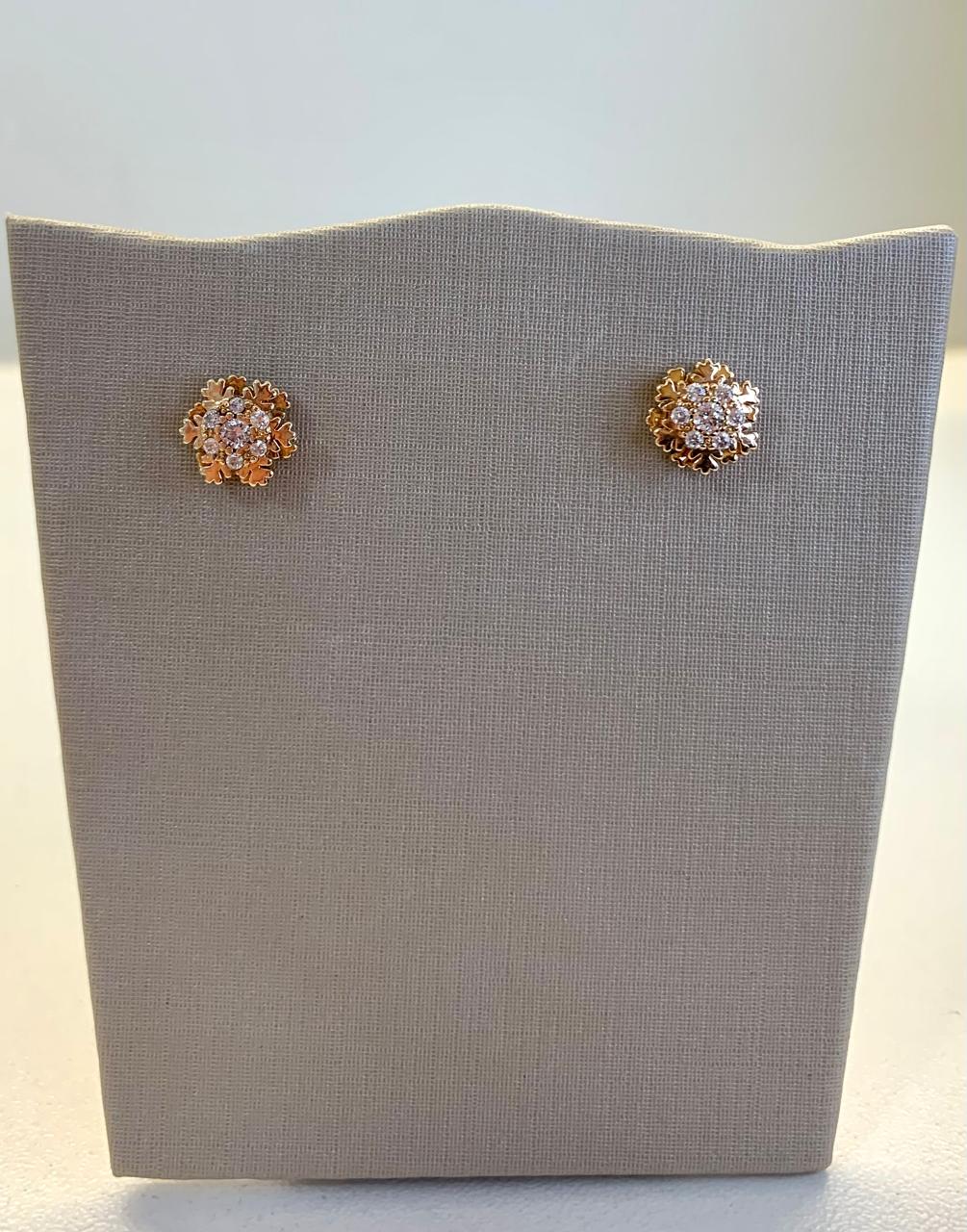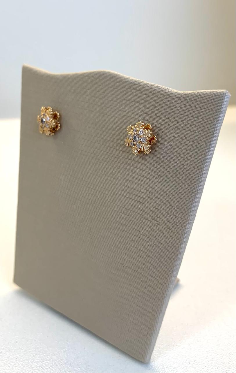 Brinco floco de neve com zircônias de prata 925 com banho de ouro 18k.