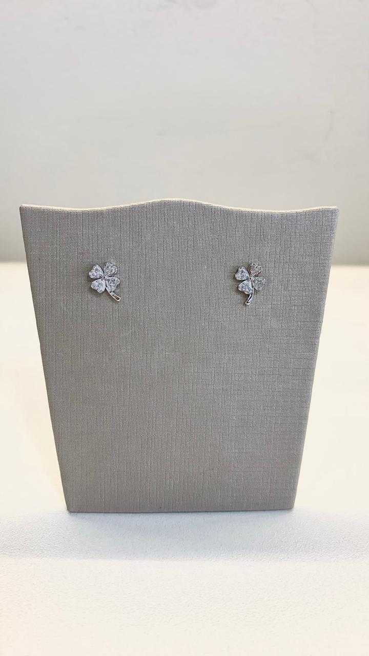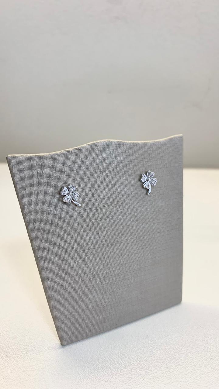 Brinco flor cravejada com zircônias brancas, em ródio branco.