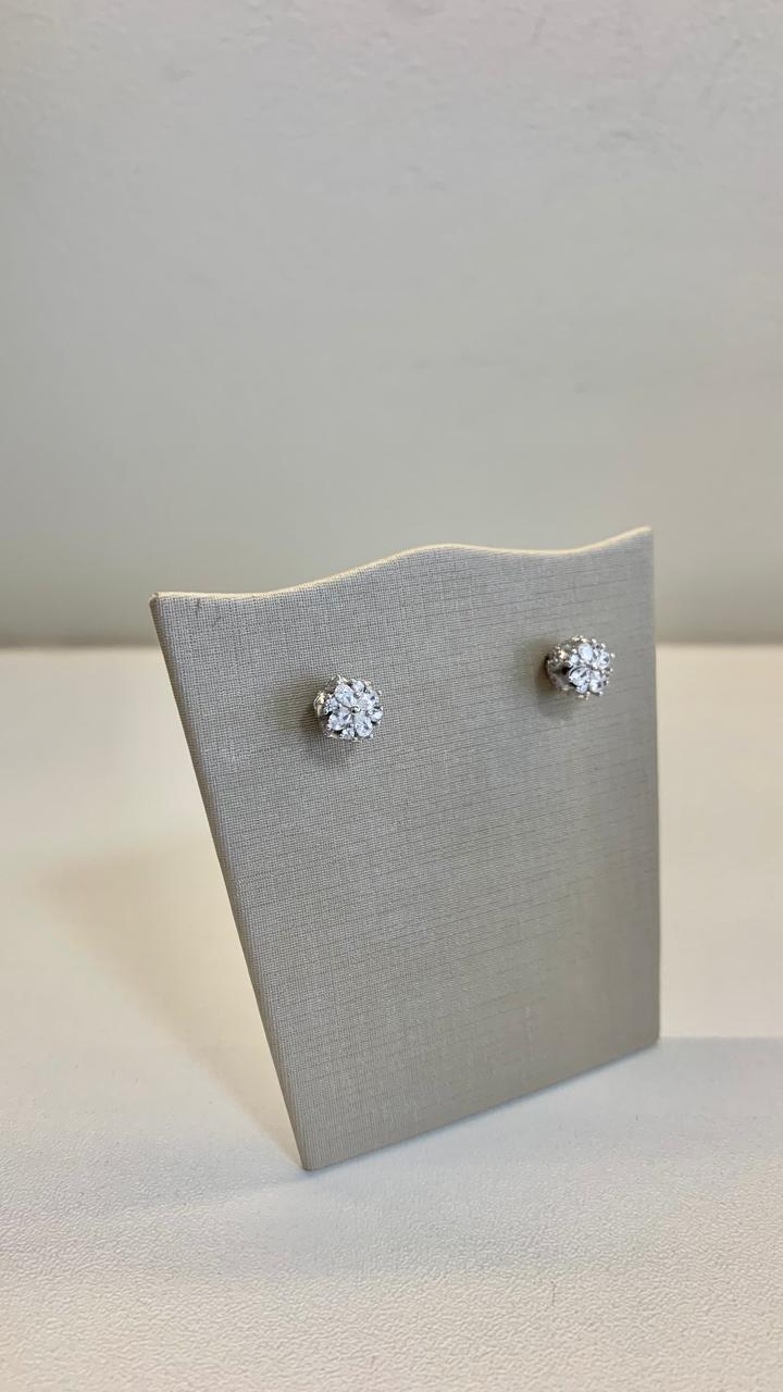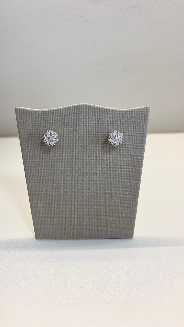 Brinco flor cravejada de zircônia brancas, em prata 925.