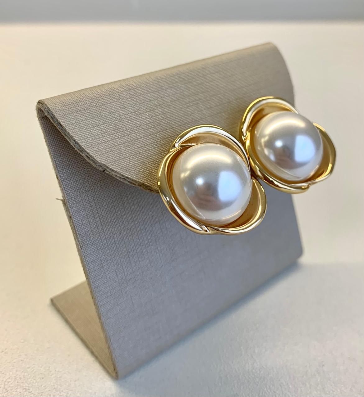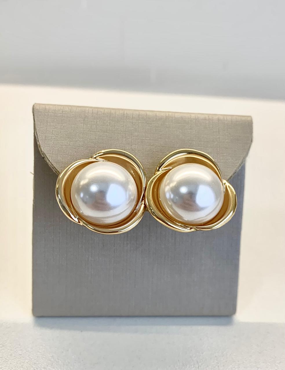 Brinco de flor com pérola, banhado a ouro 18k.
