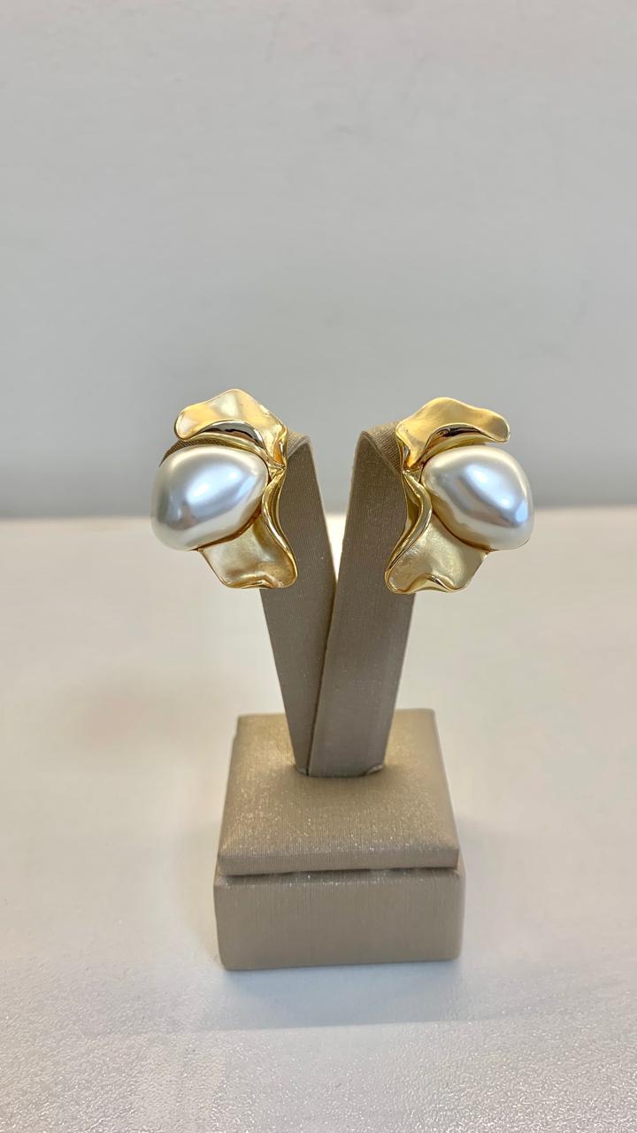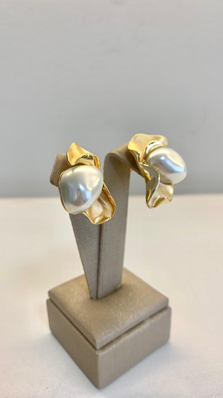 Brinco flor pérola sintética banhado a ouro18k.