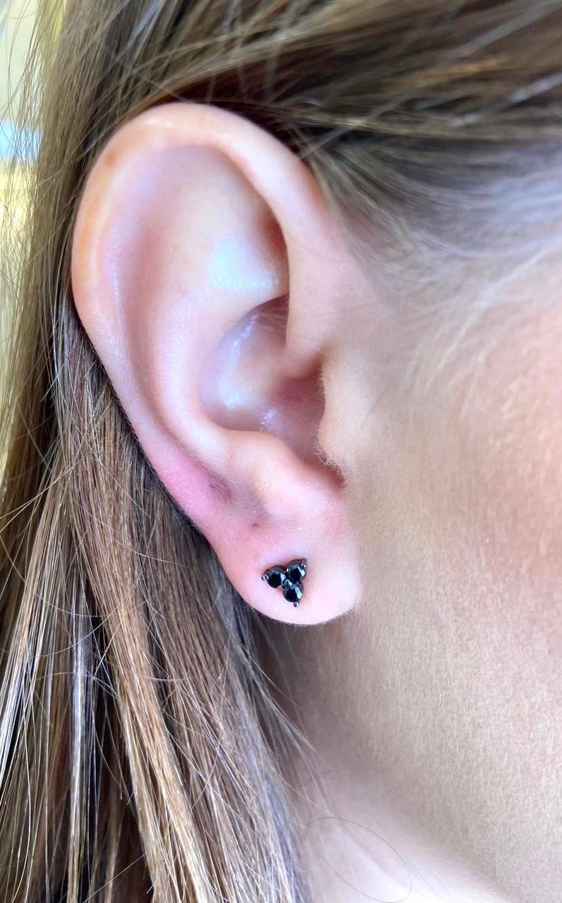 Brinco florzinha zircônia negra, em prata 925 com banho de ródio negro.