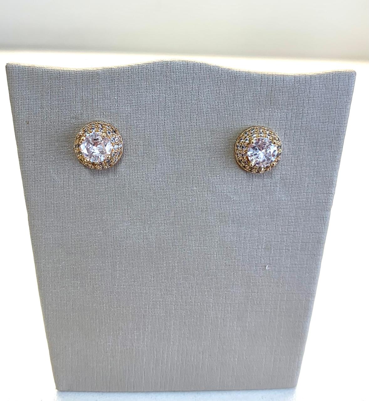 Brinco globo cravejado com zircônias, banhado a ouro 18k.