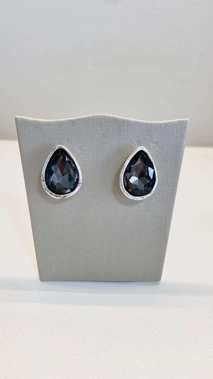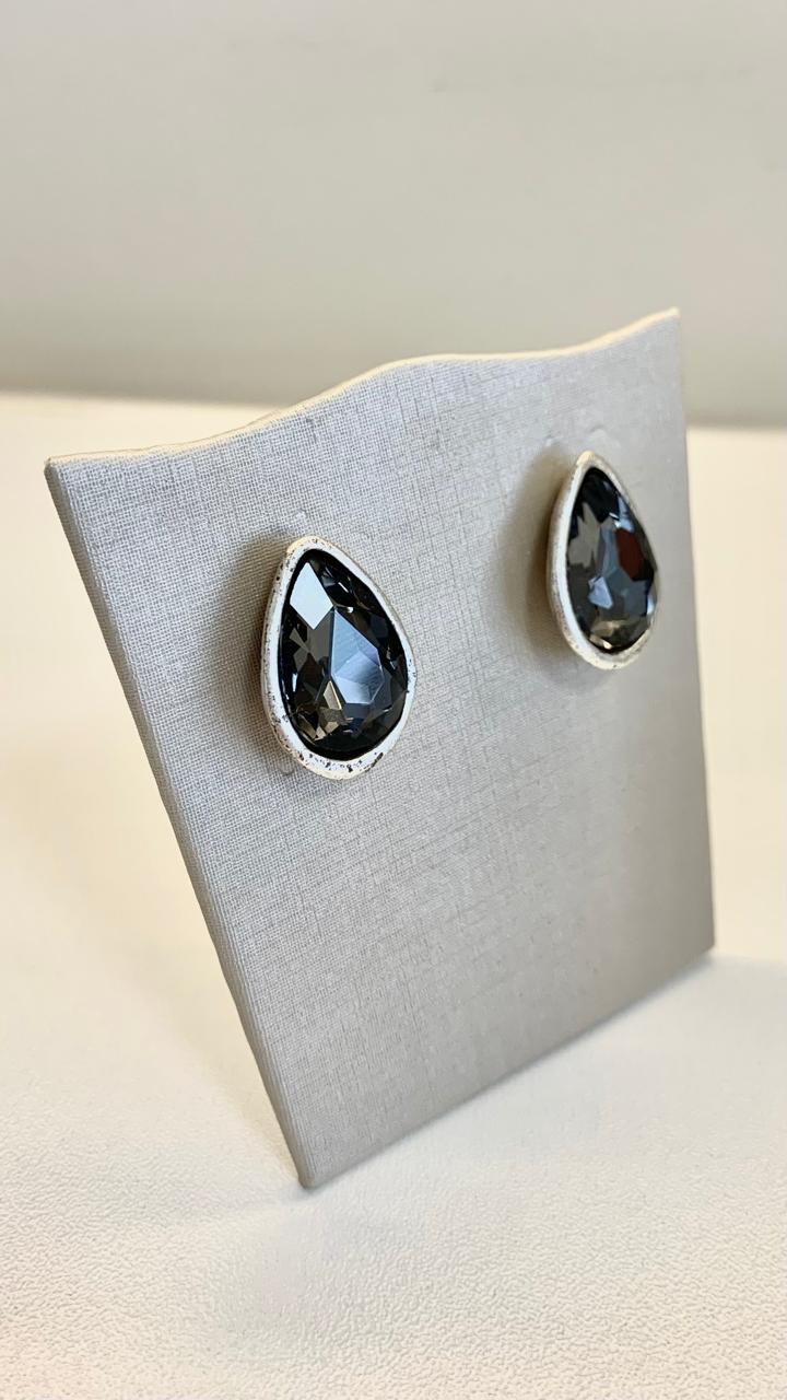 Brinco gota com cristal Fumê, em zamac.