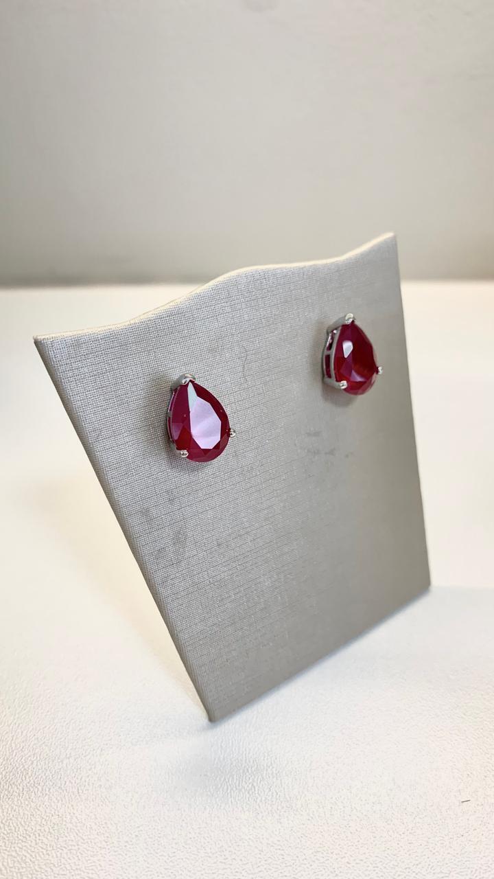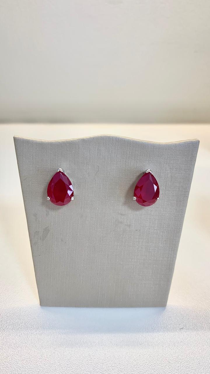 Brinco gota lisa 10mm de rubi, em prata 925.
