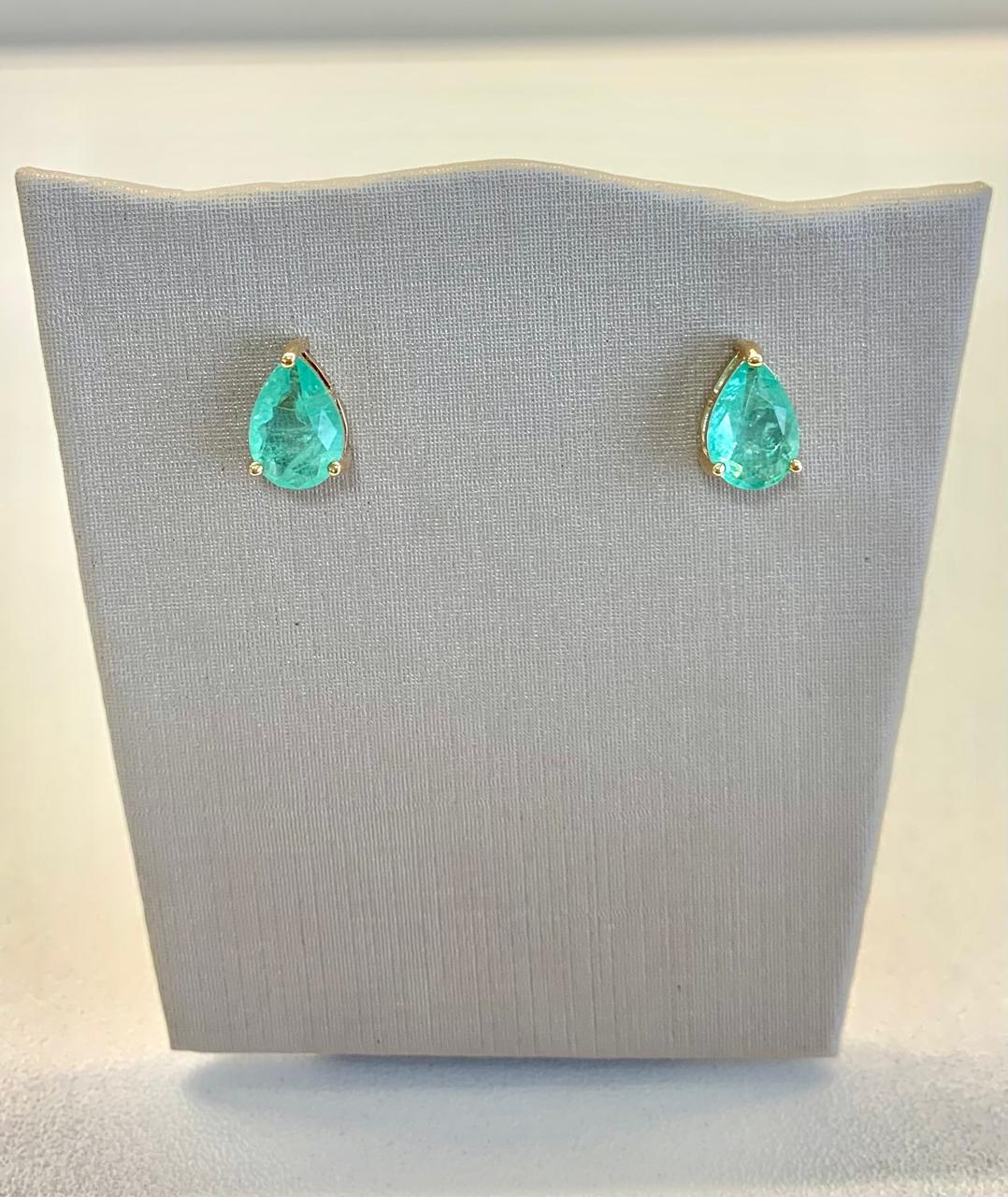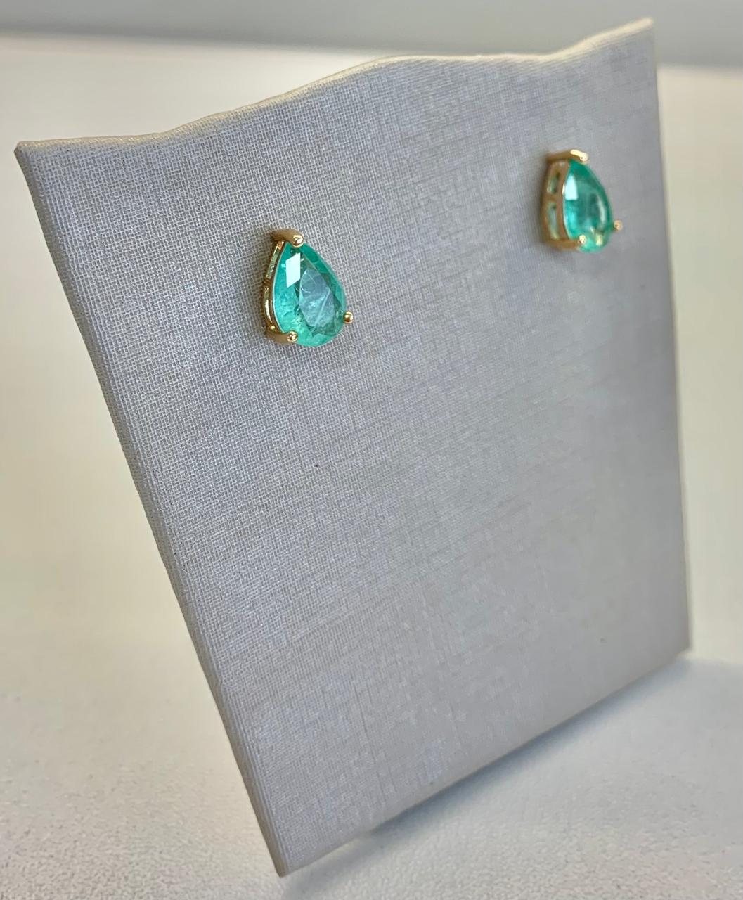Brinco banhado a ouro 18k, com uma gota de esmeralda colombiana fusion.