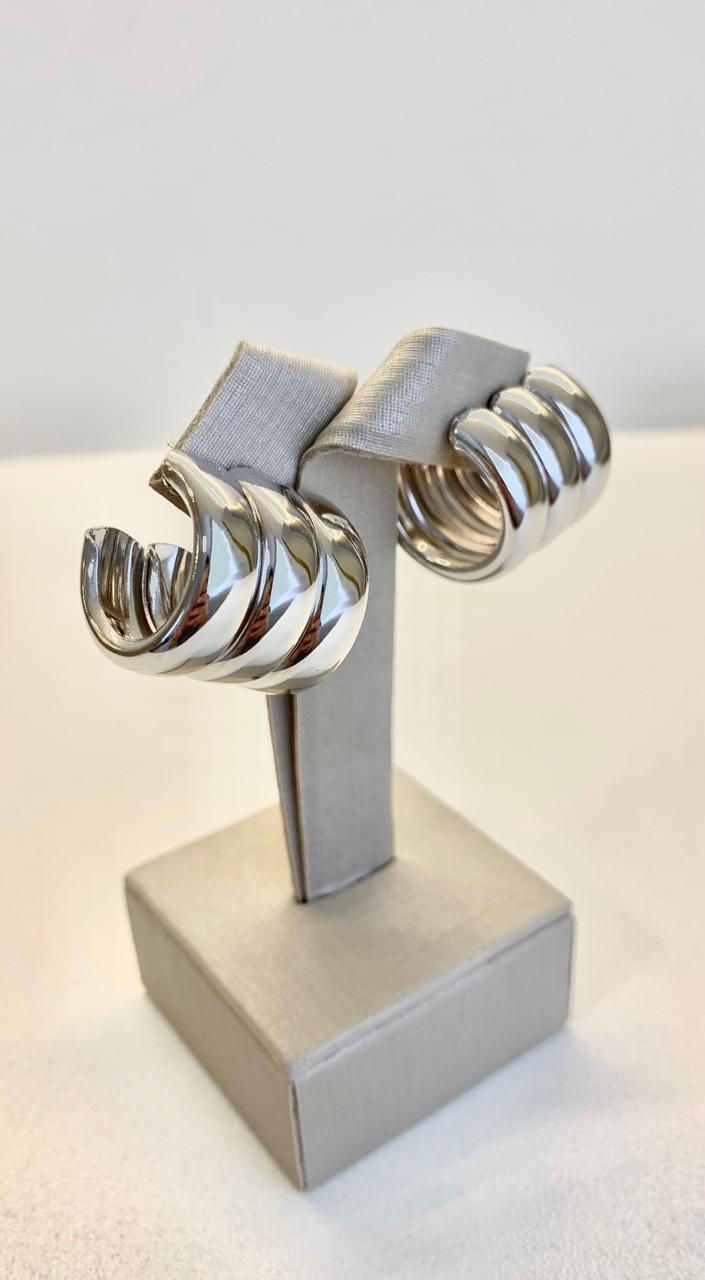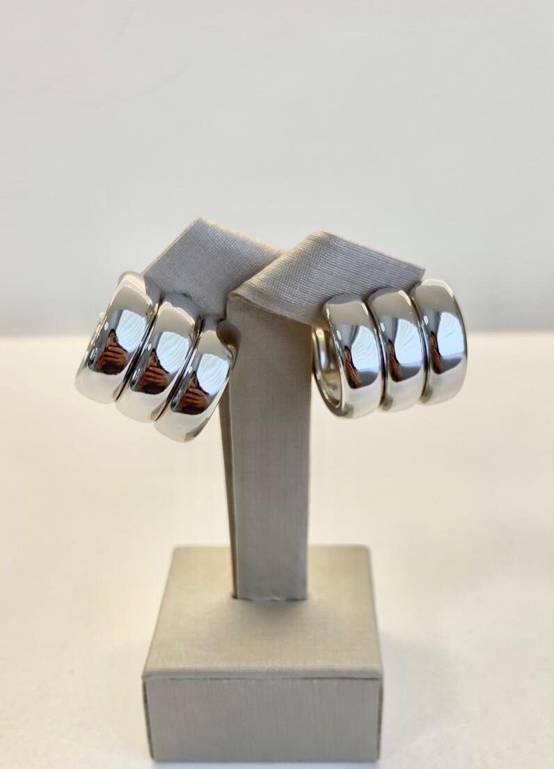Brinco trio liso em ródio branco.