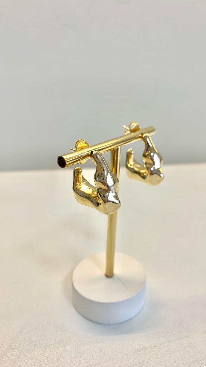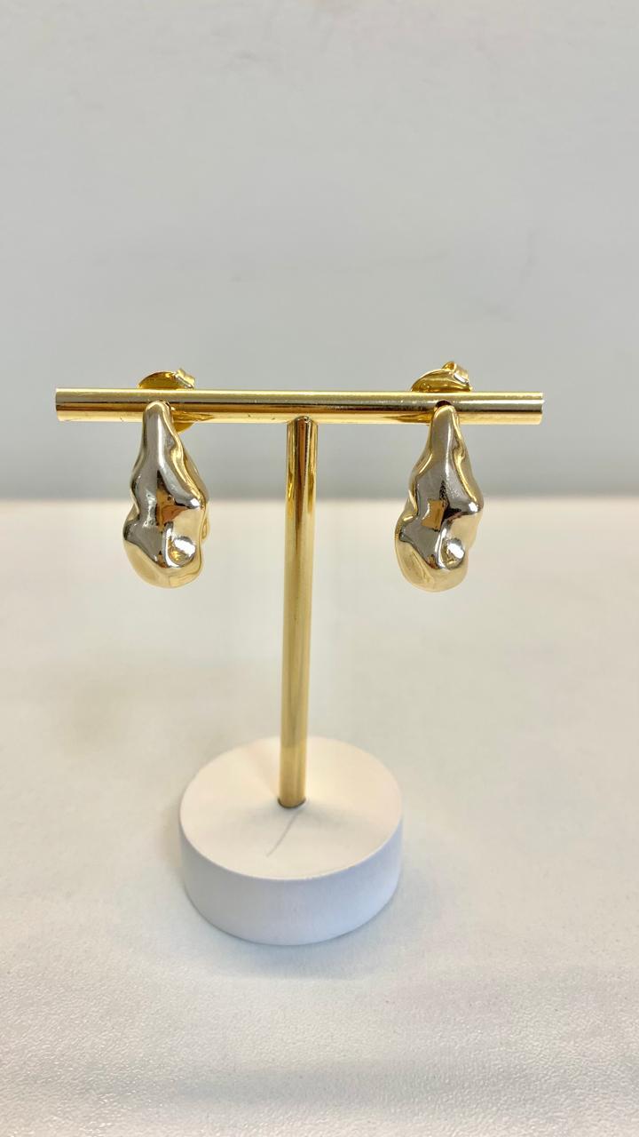 Brinco L orgânico banhado a ouro18k.