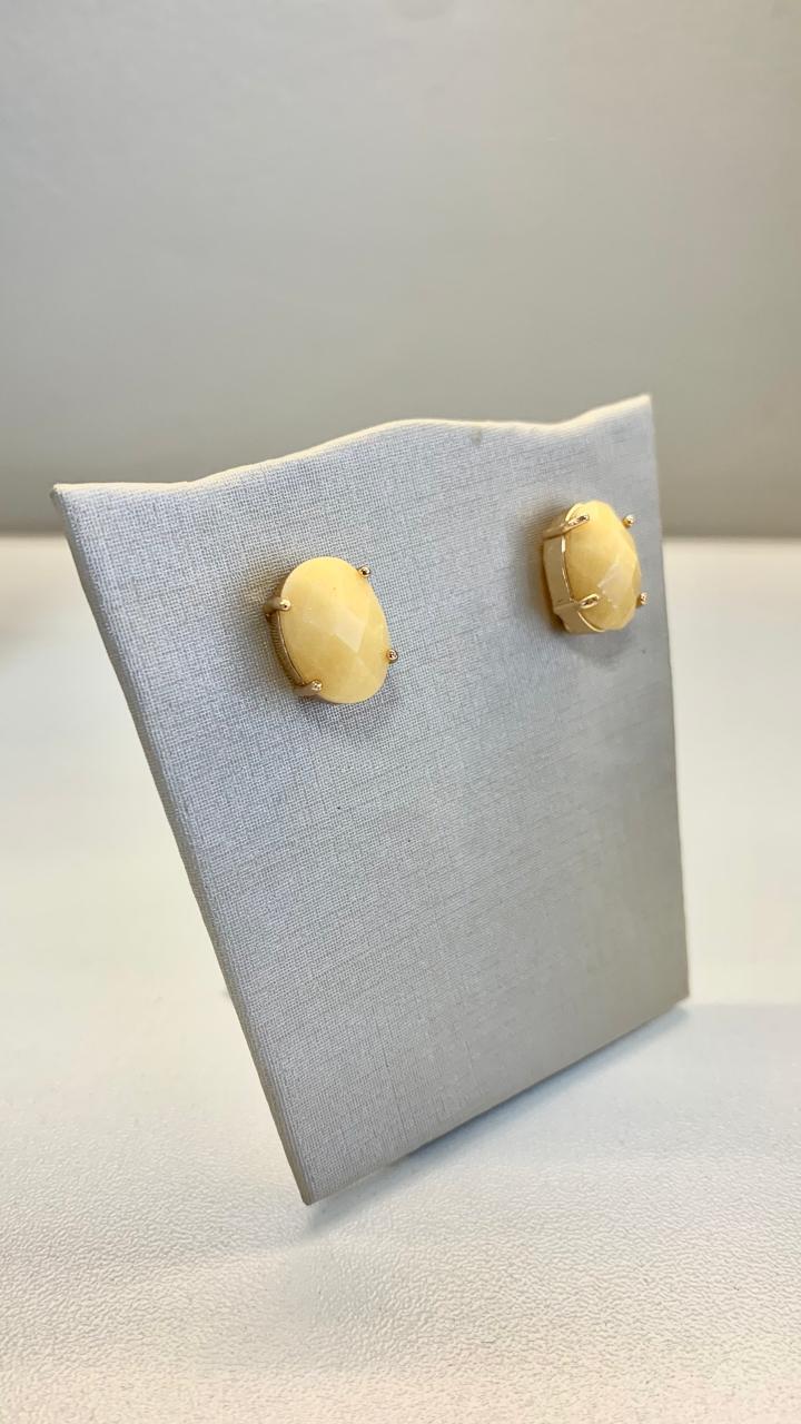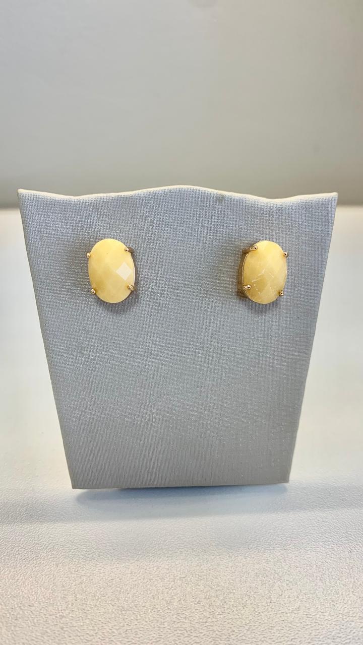 Brinco oval de pedra natural Ágata amarela, banhado a ouro18k.