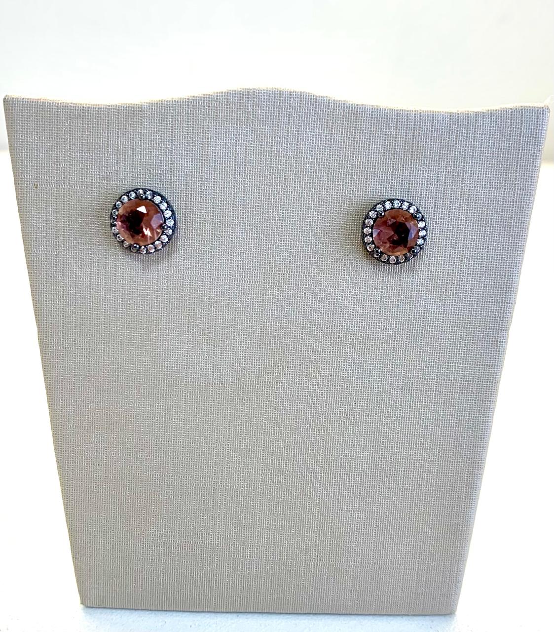 Brinco de morganita cravejado com zircônias de ródio negro.