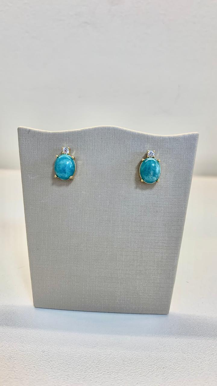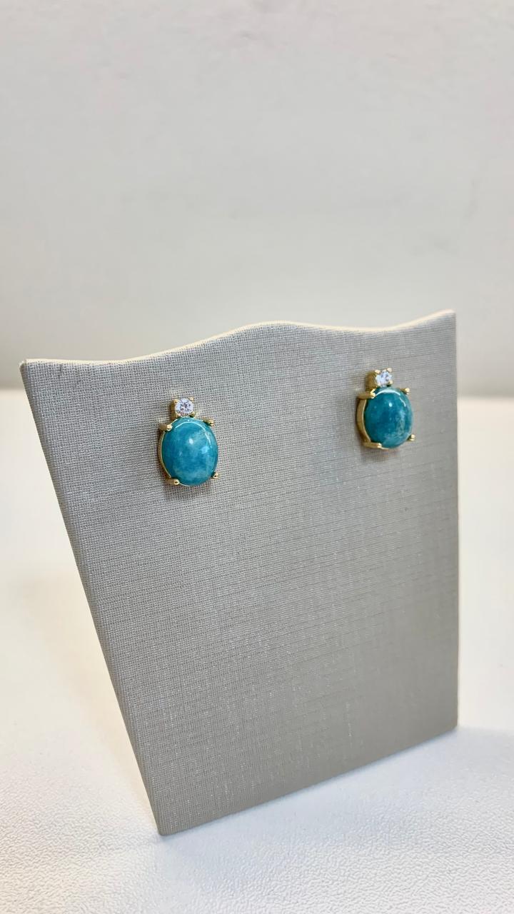 Brinco de pedra natural amazonita com uma zircônia branca, banhado a ouro18k.