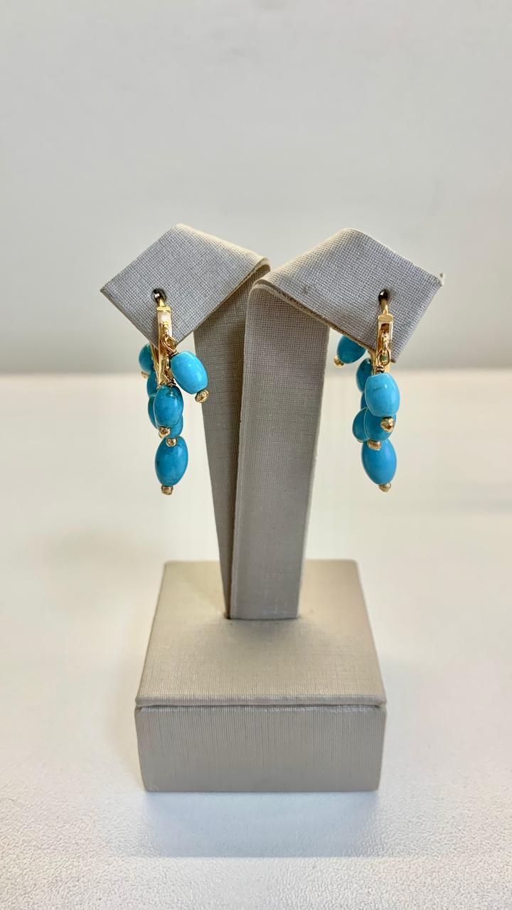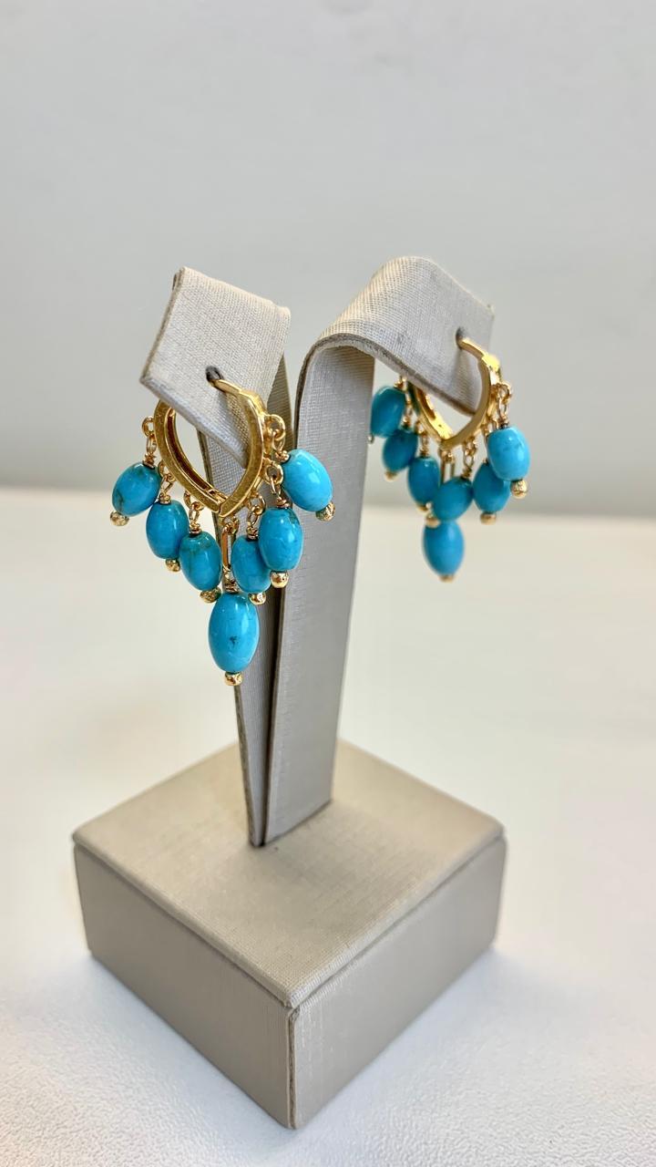 Brinco argola click com pingentes em pedra natural howlita turquesa, banhado a ouro 18k.