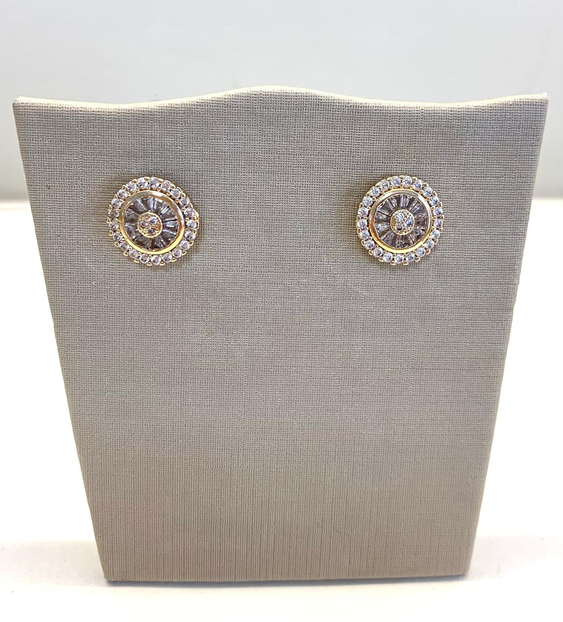 Brinco pizza com baguetes cravejado com zircônias, banhado a ouro 18k.