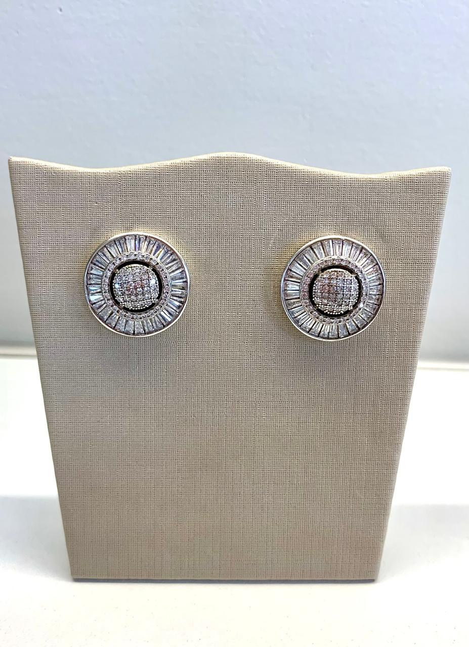 Brinco pizza de prata 925, com baguete e zircônia.