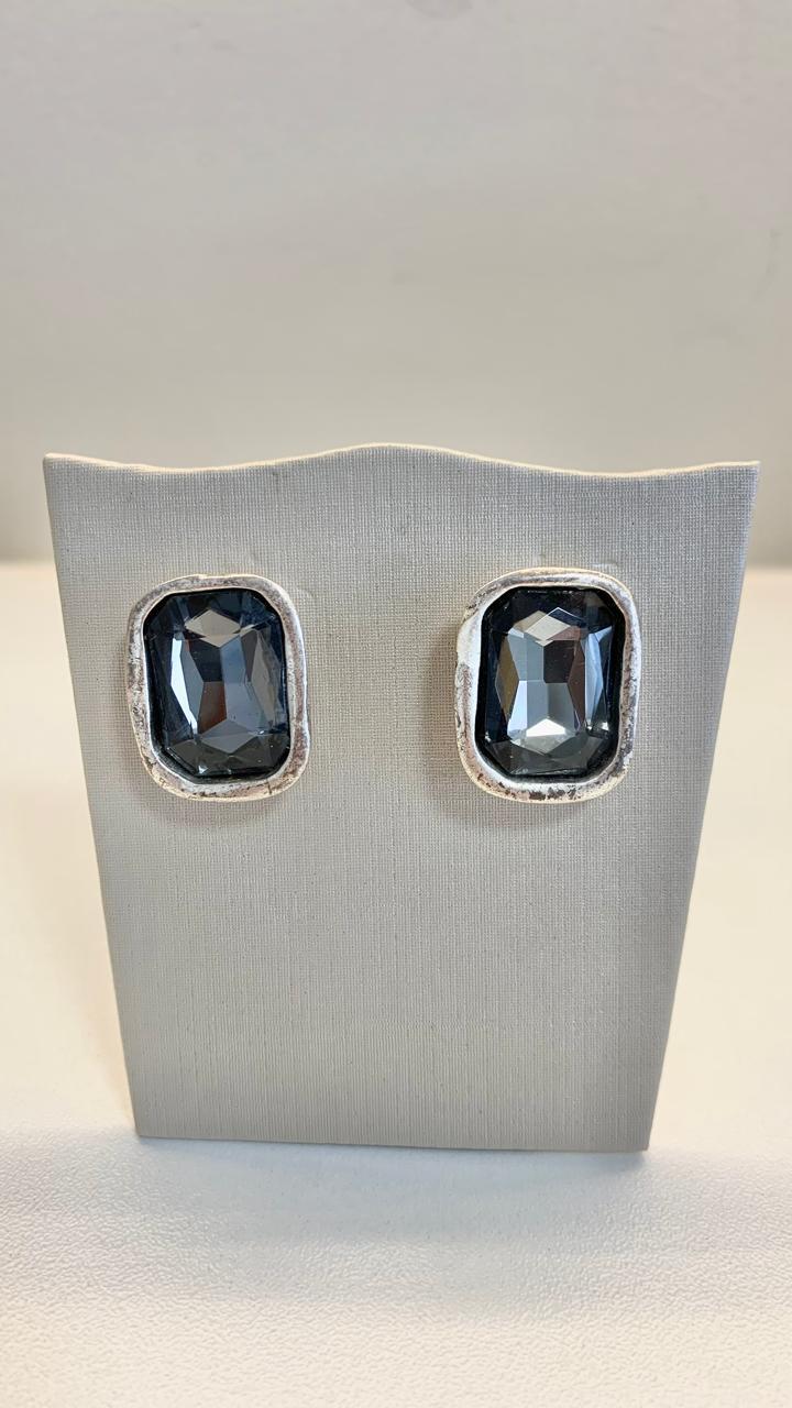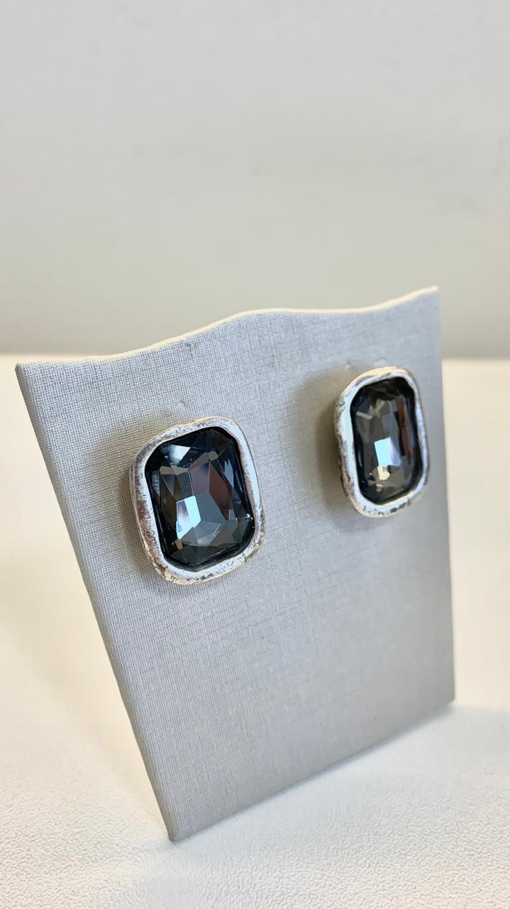 Brinco quadrado com cristal Fumê, em zamac.