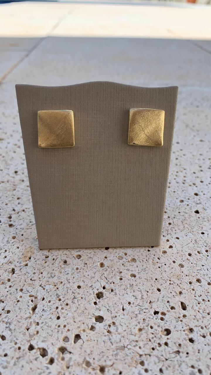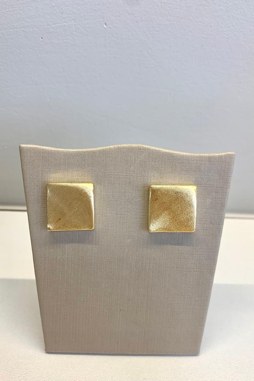 Brinco quadrado escovado banhado a ouro 18k.