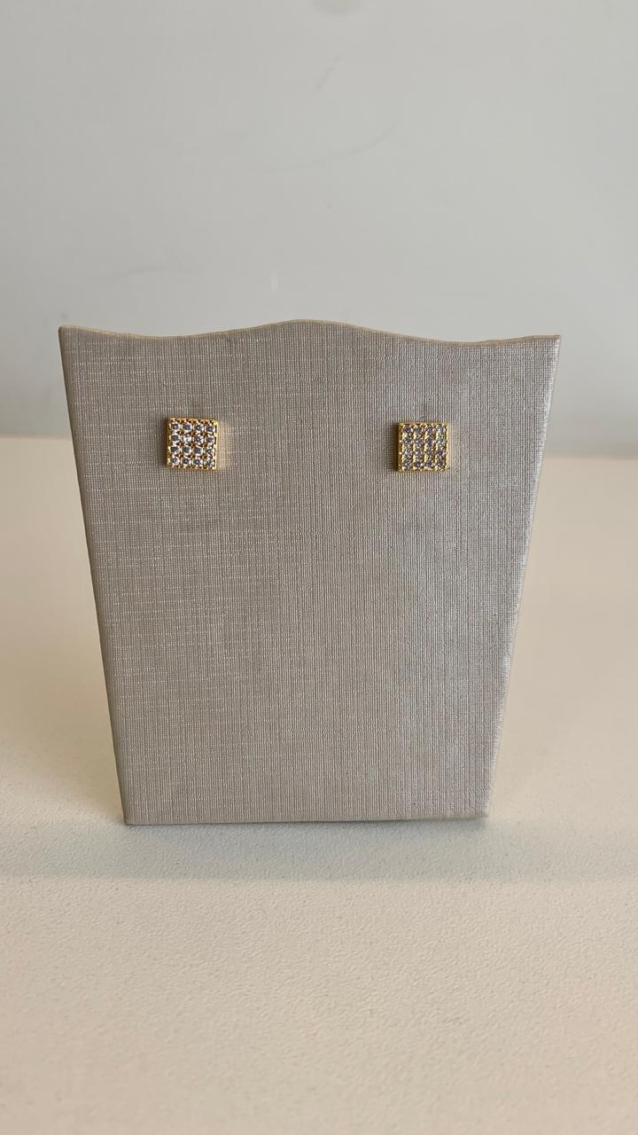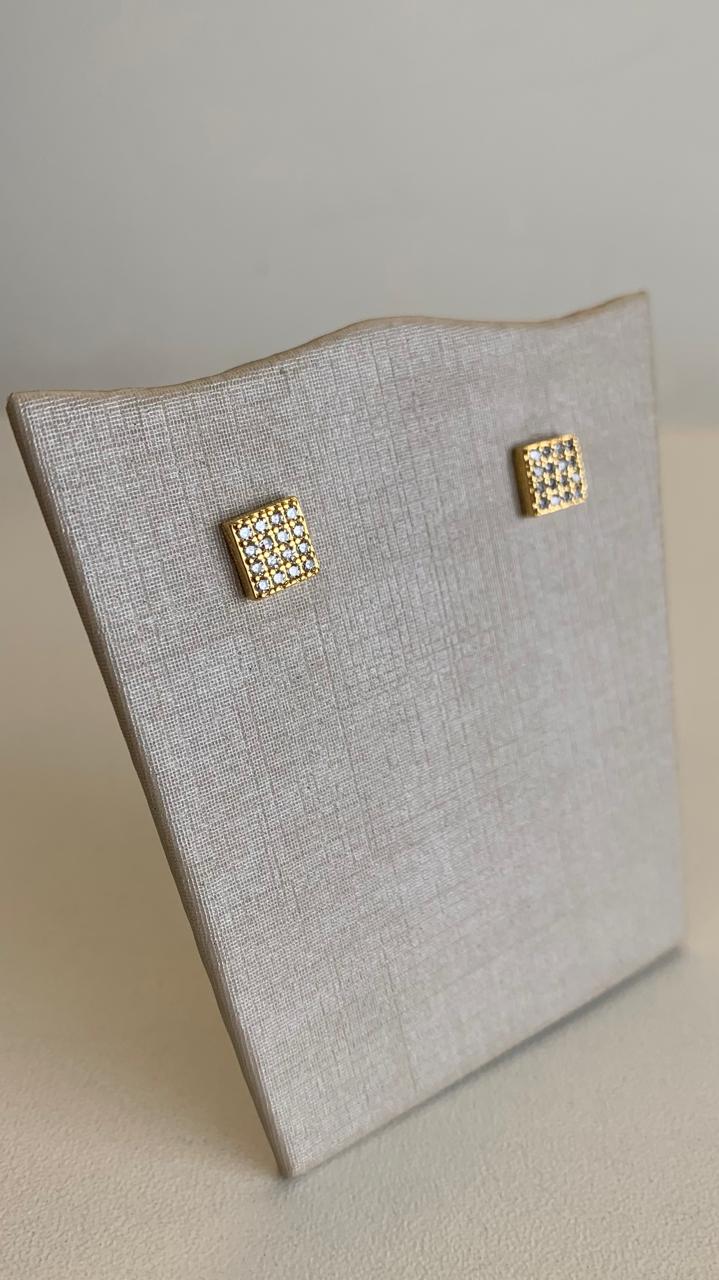 Brinco quadrado cravejado com zircônias banhado a ouro 18k.