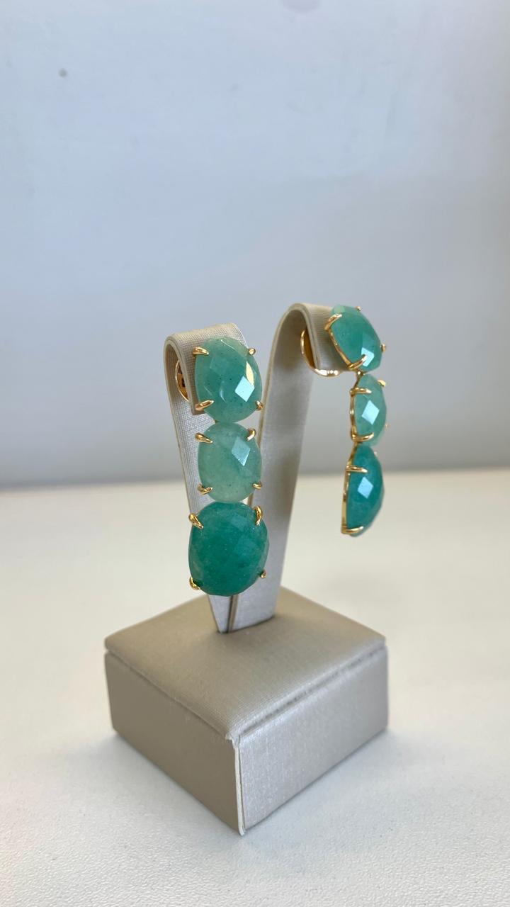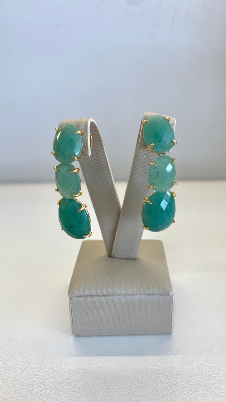 Brinco pedra natural quartzo verde, banhado a ouro 18k.