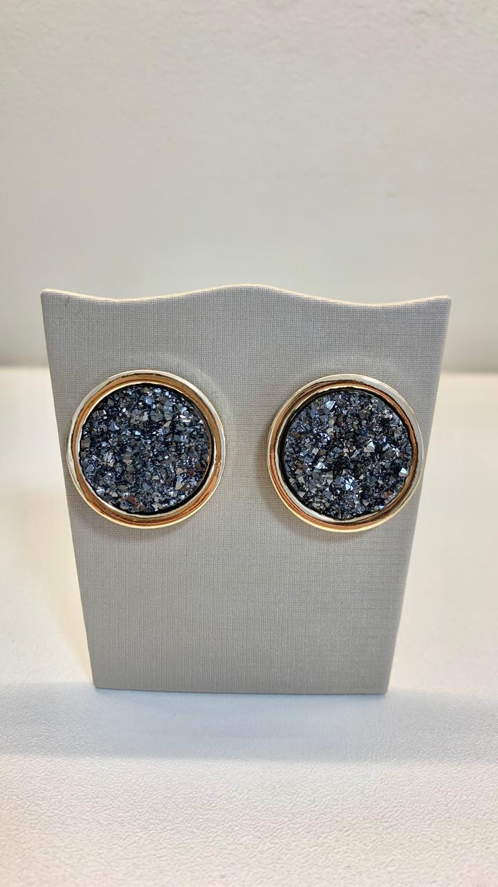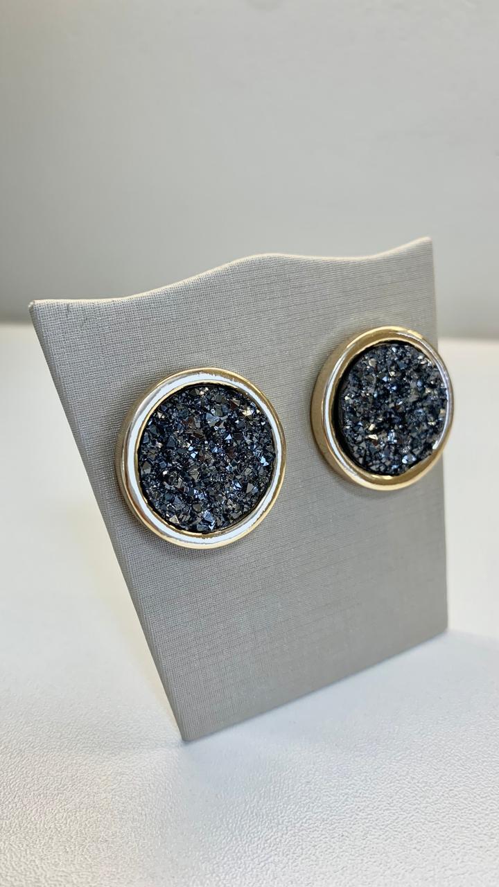 Brinco redondo com detalhes em resina, banhado a ouro18k.