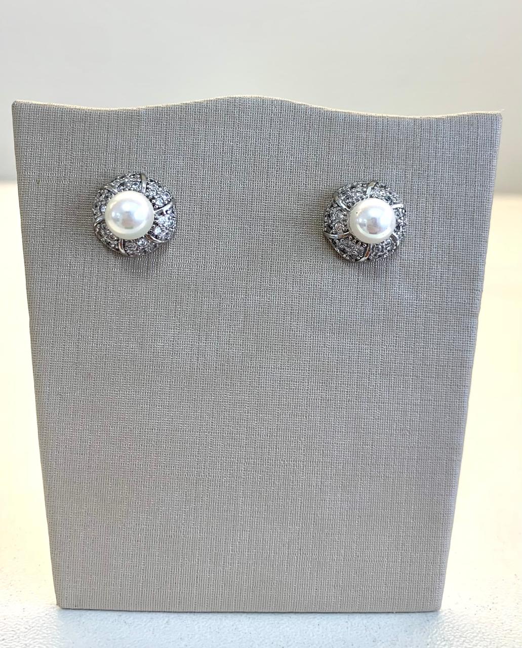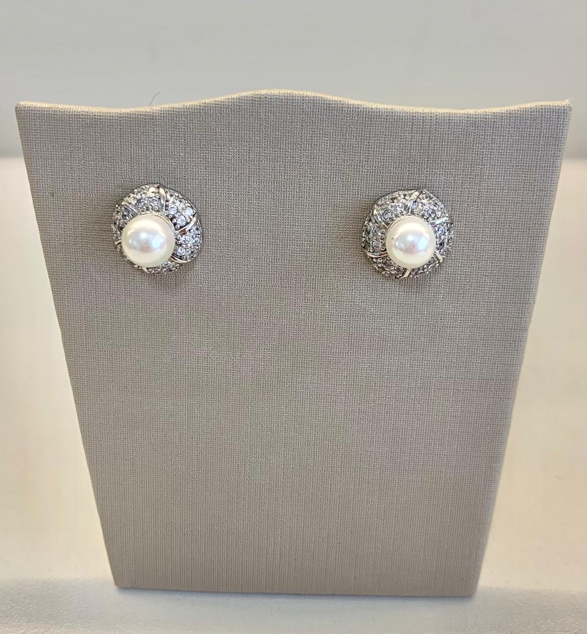 Brinco de pérola cravejado com zircônias de prata 925.