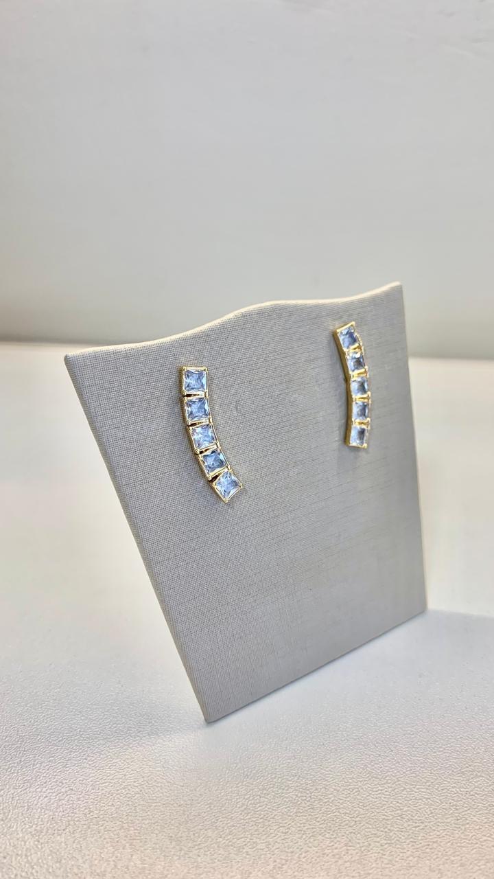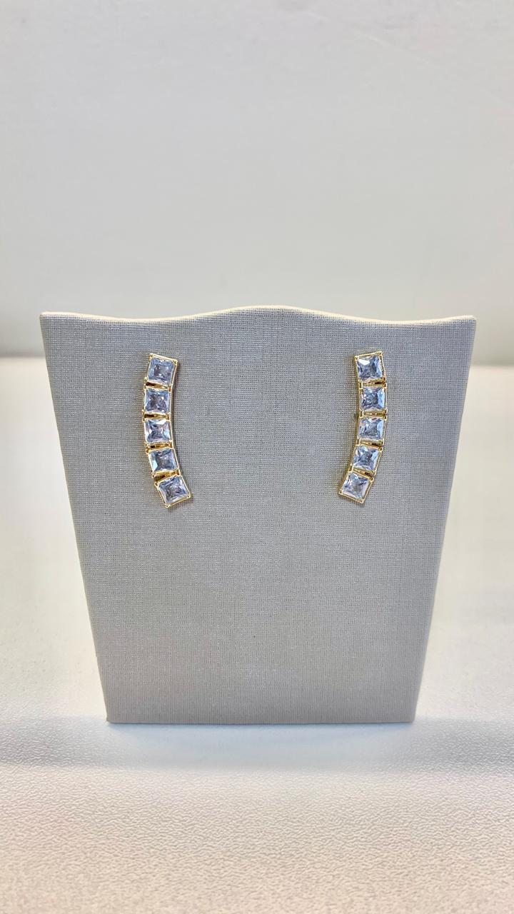 Brinco com zircônias brancas quadradas, banhado a ouro 18k.