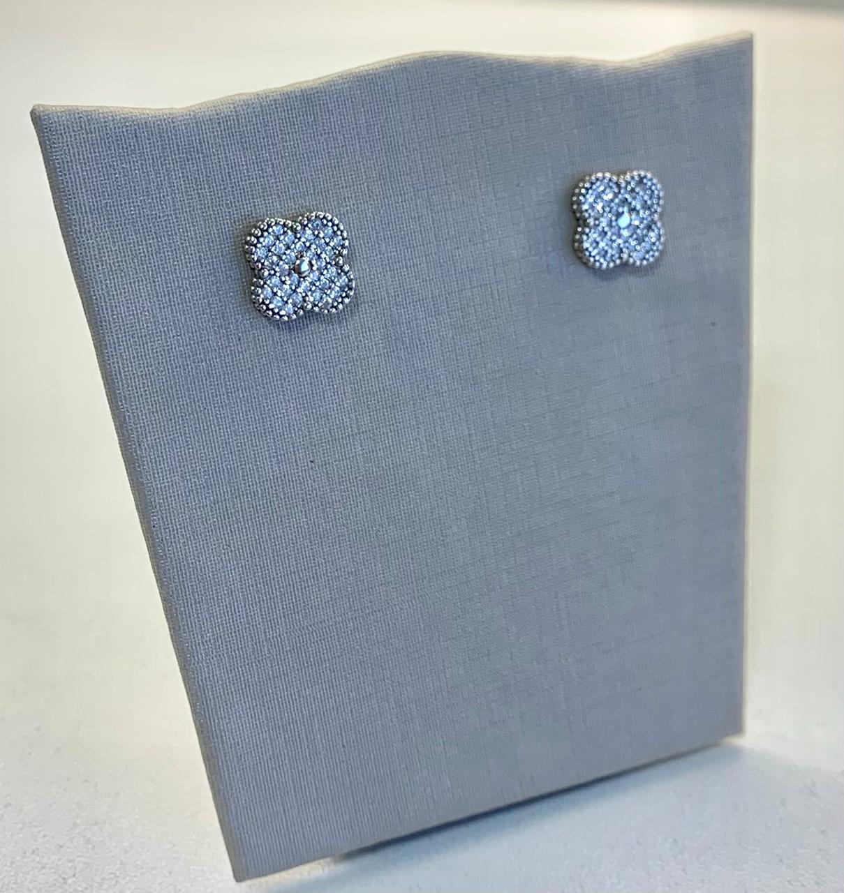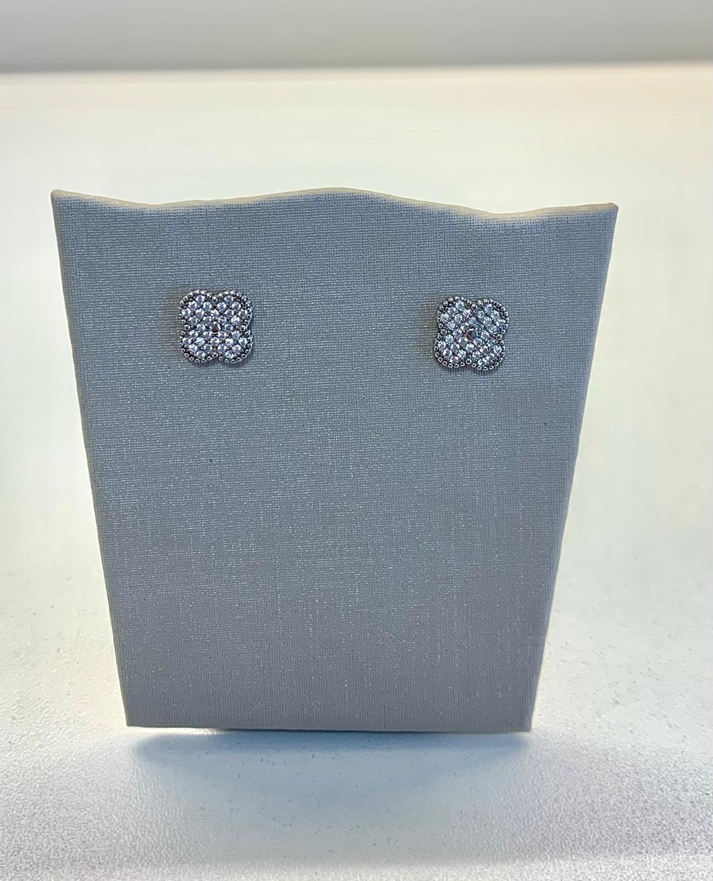 Brinco de prata 925, com trevo cravejado com zircônias.