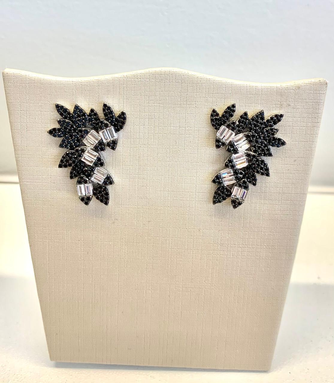 Brinco mapa de prata 925, com zircônia negra e baguete.