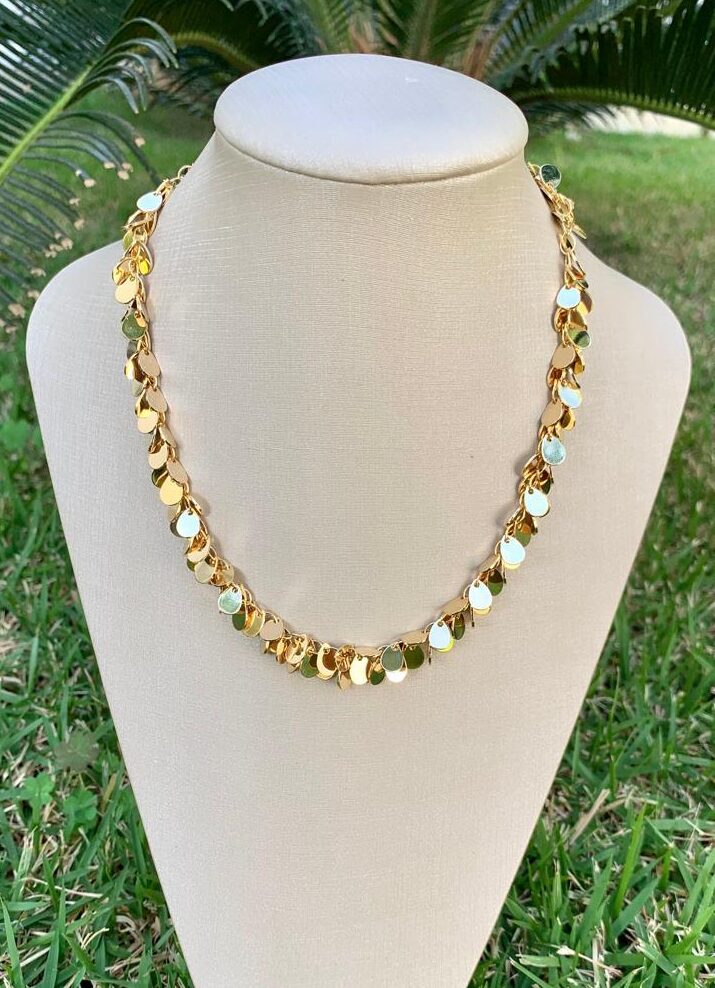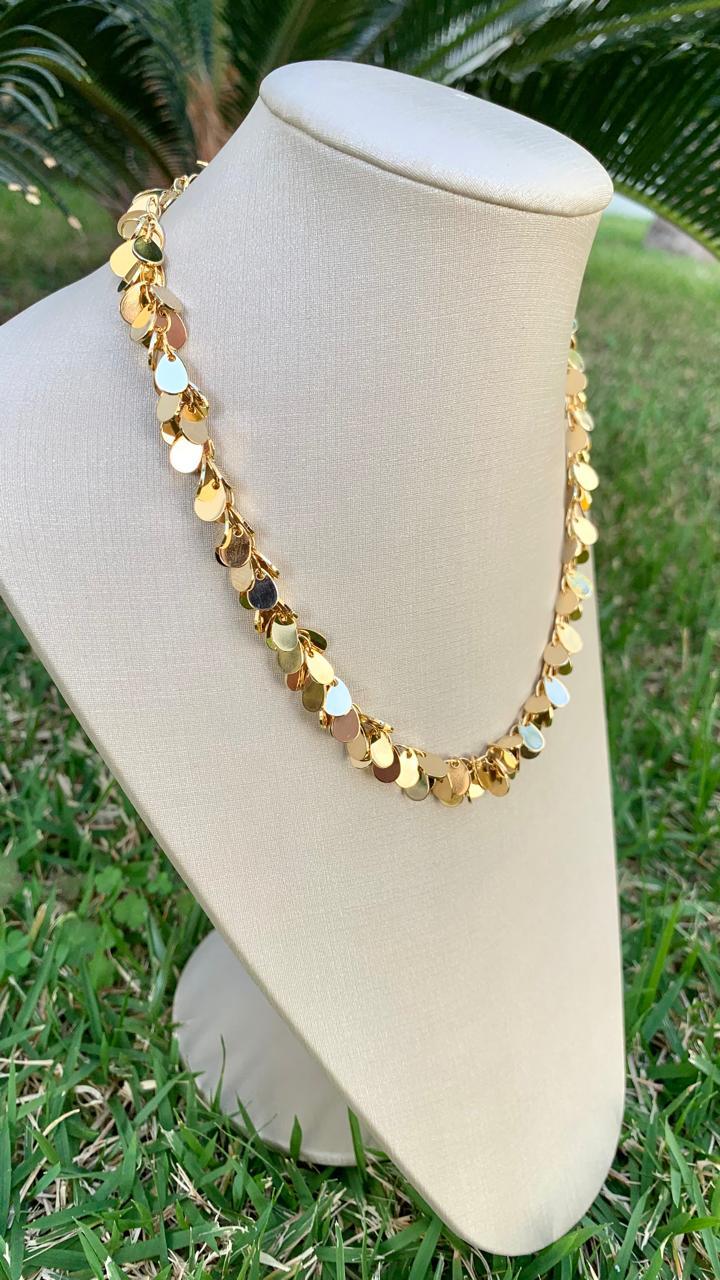 Choker medalhas, banhada a ouro 18k.