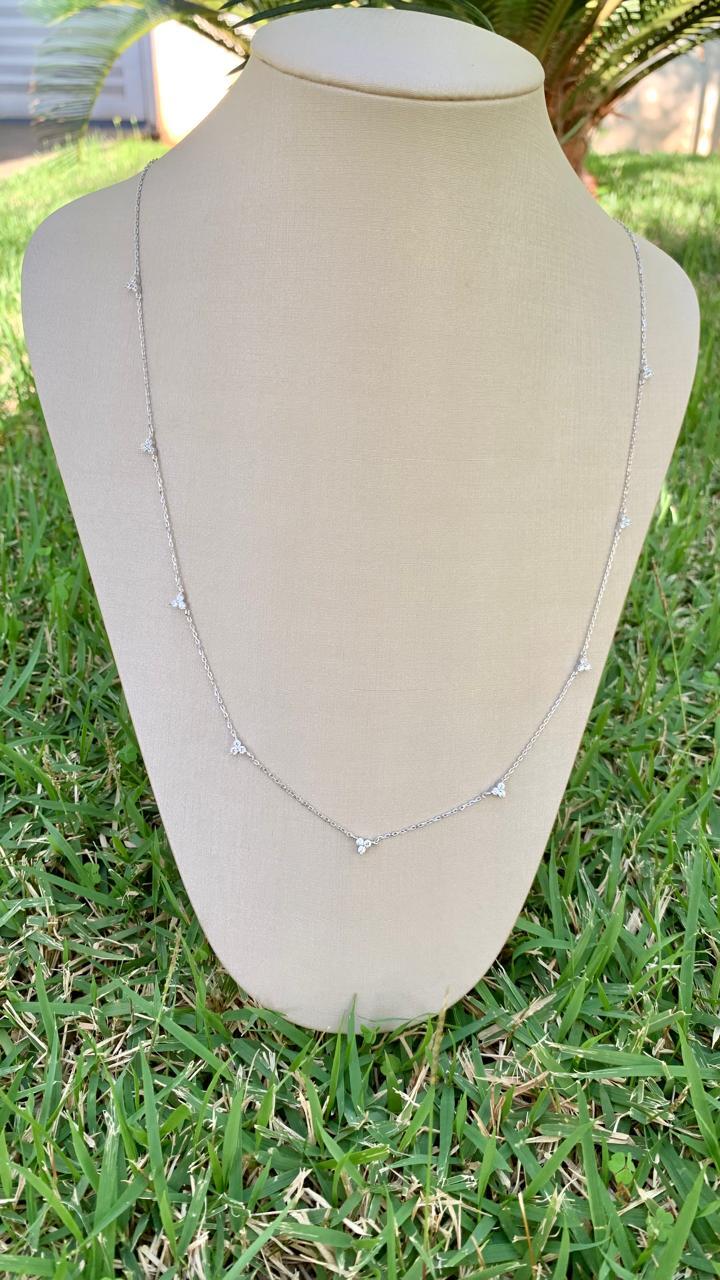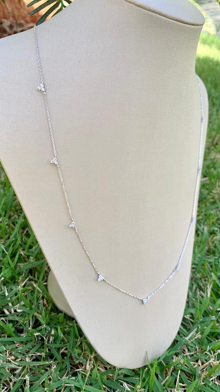Colar 9 cachos de uva cravejado com zircônias brancas, em prata 925.