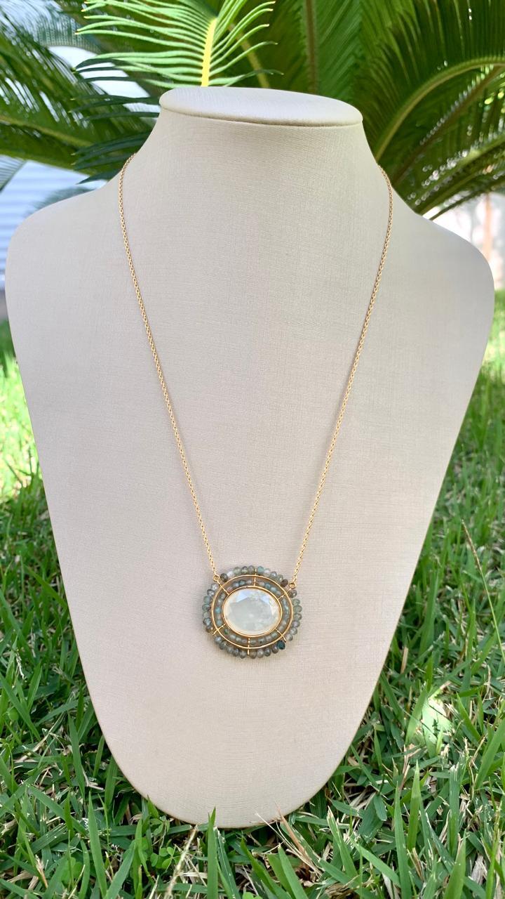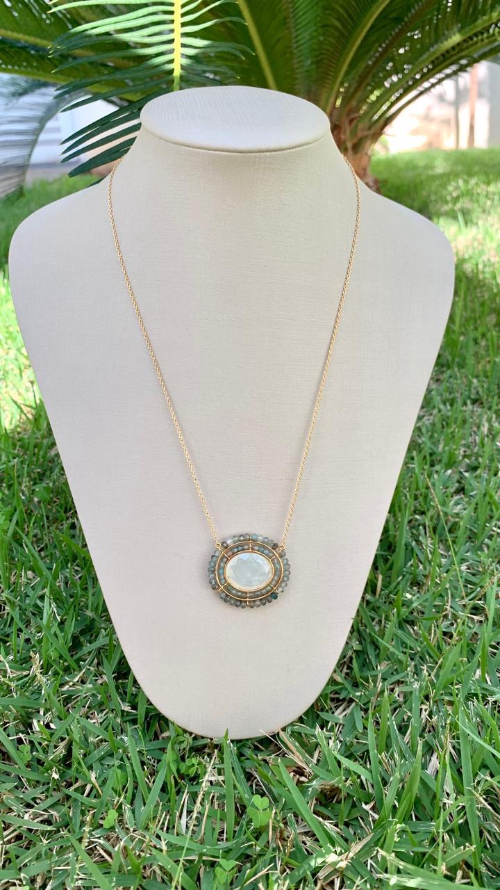 Colar água marinha, banhado a ouro18k.