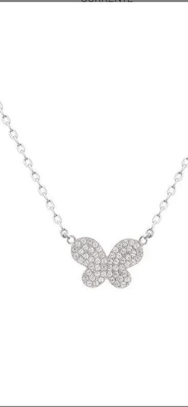 Colar borboleta cravejada de zircônias brancas, em prata 925.