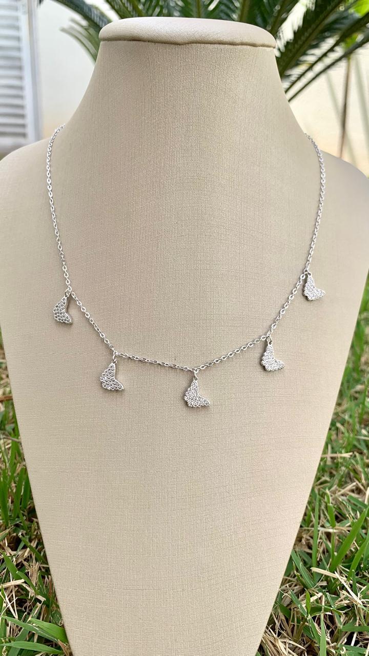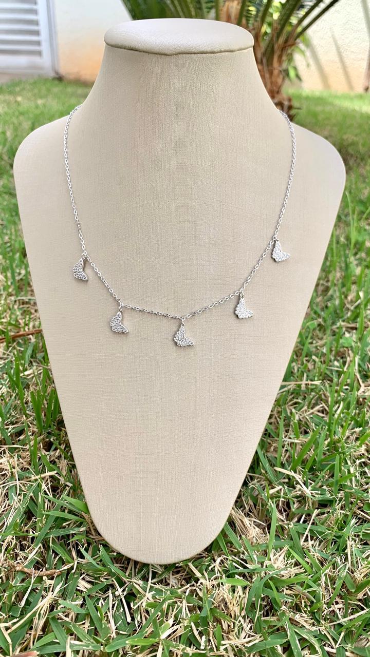 Colar borboletas cravejadas com zircônias brancas, em ródio branco.