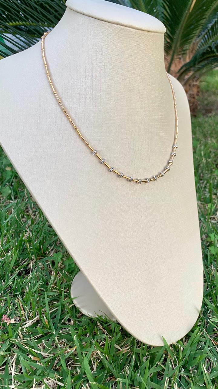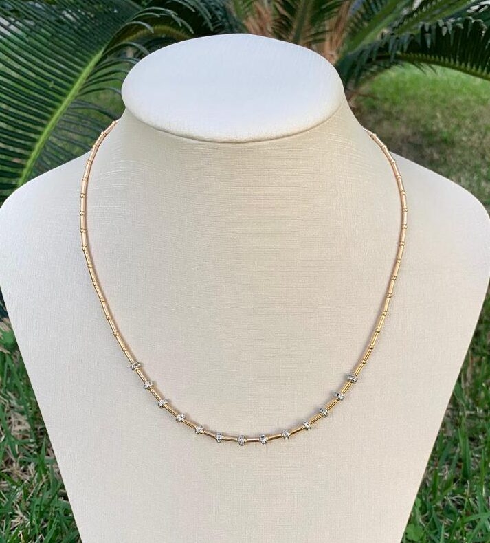Colar canutilho com hematita, banhado a ouro 18k.