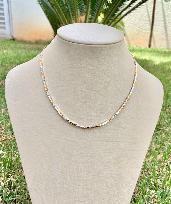 Colar canutilho duo, em ródio branco e banhado a ouro 18k.