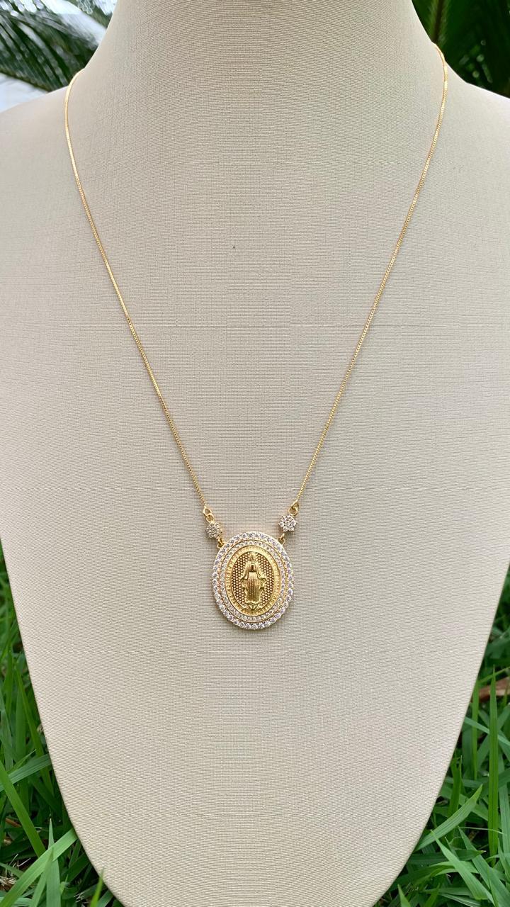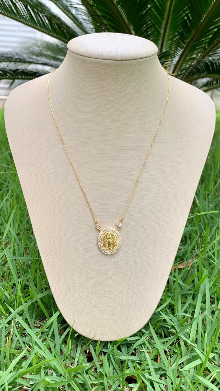 Colar com Medalha de Nossa Senhora das Graças Banhado a Ouro18k