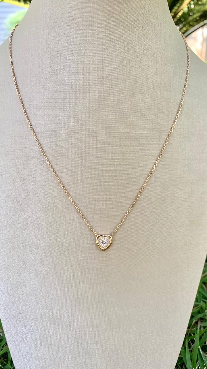 Colar coração cravejado com zircônias brancas em prata 925 e banho de ouro18k.