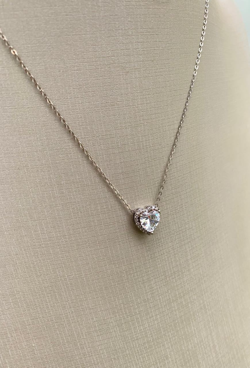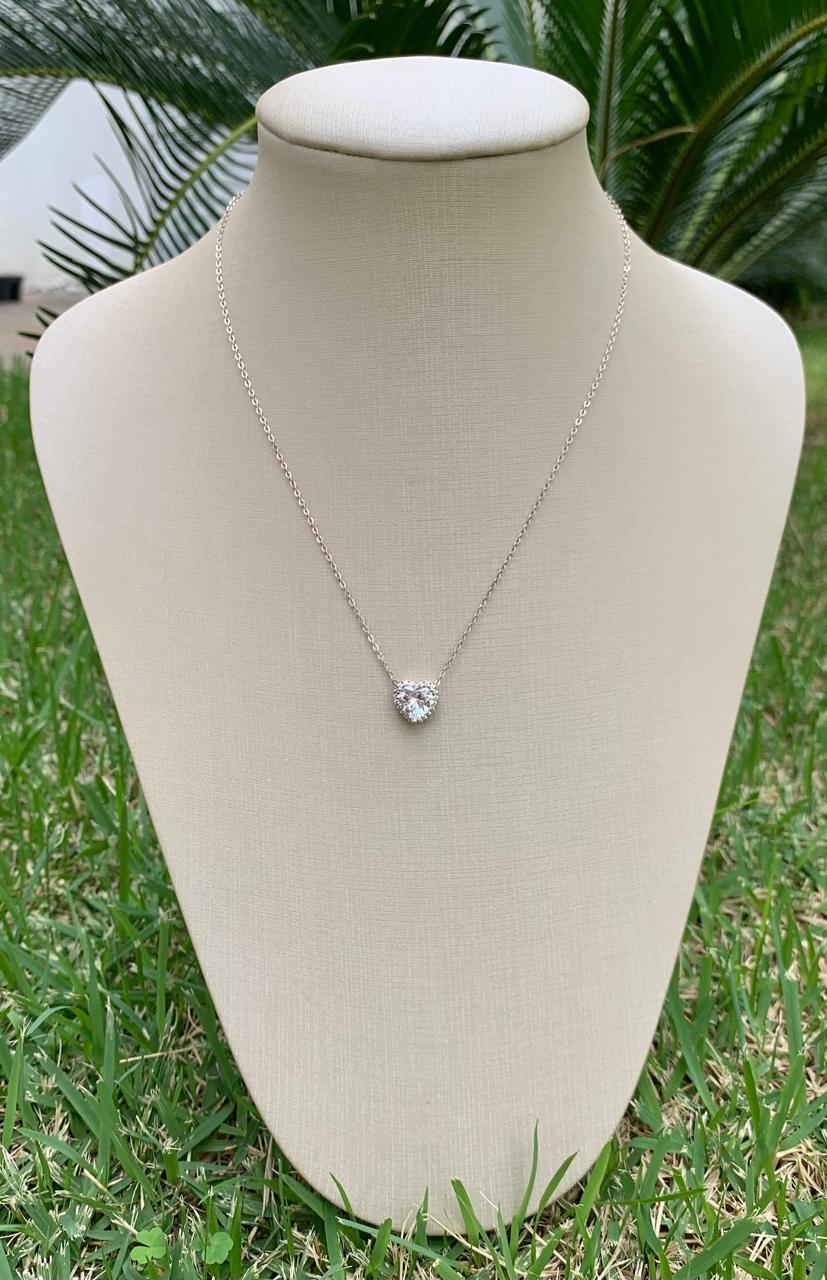 Colar de prata 925, com 45cm de comprimento, de coração de zircônia cravejado com zircônias.