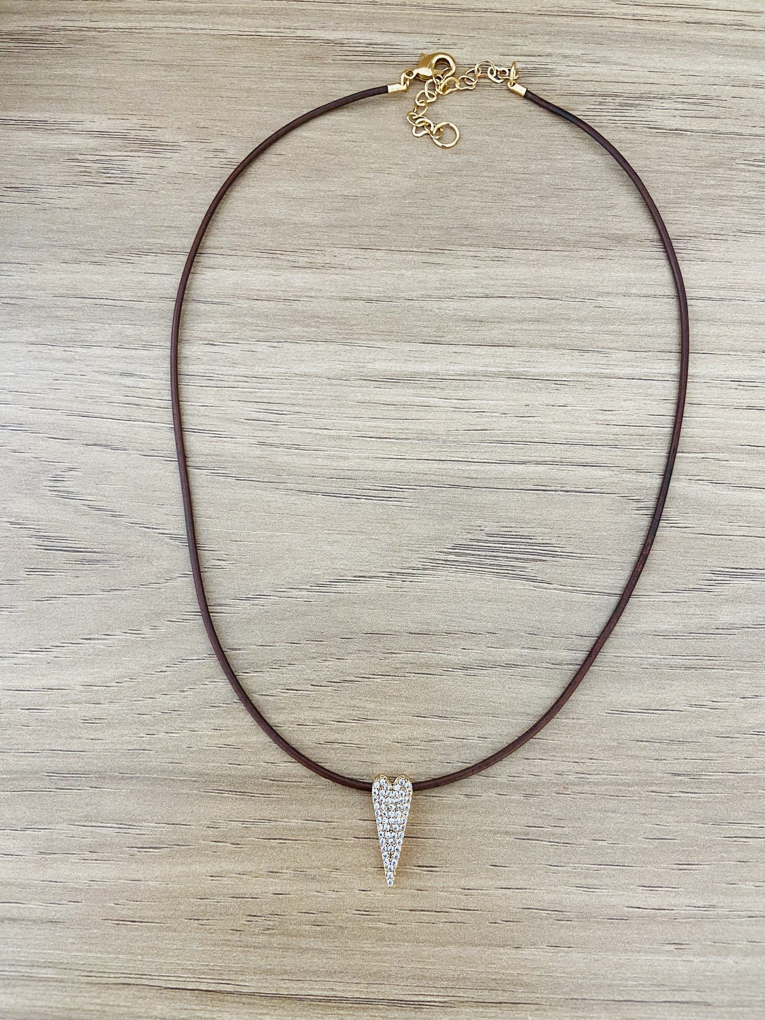Colar de courinho com pingente de coração banhado a ouro 18k.