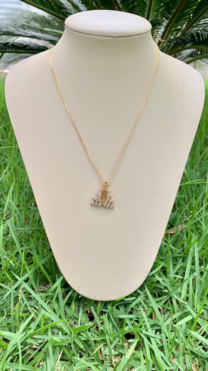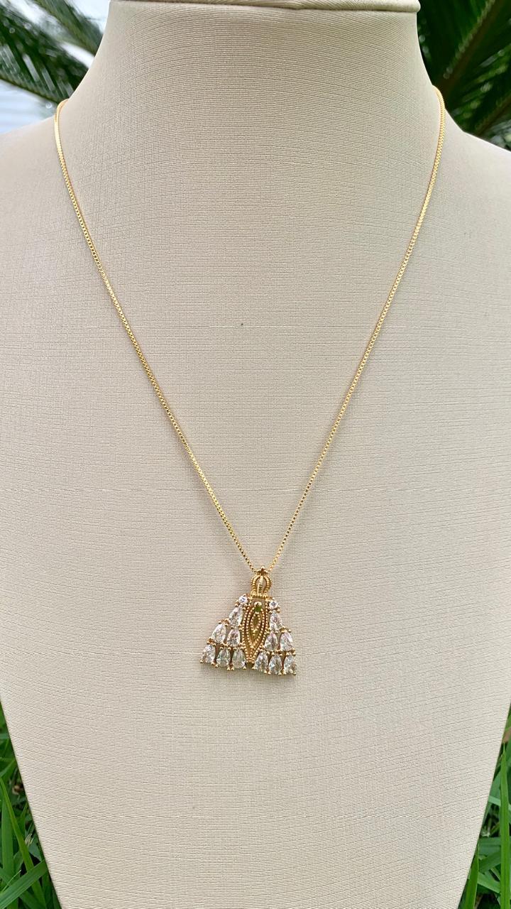 Colar de Nossa Senhora Aparecida com manto de cristais, banhado a ouro18k.