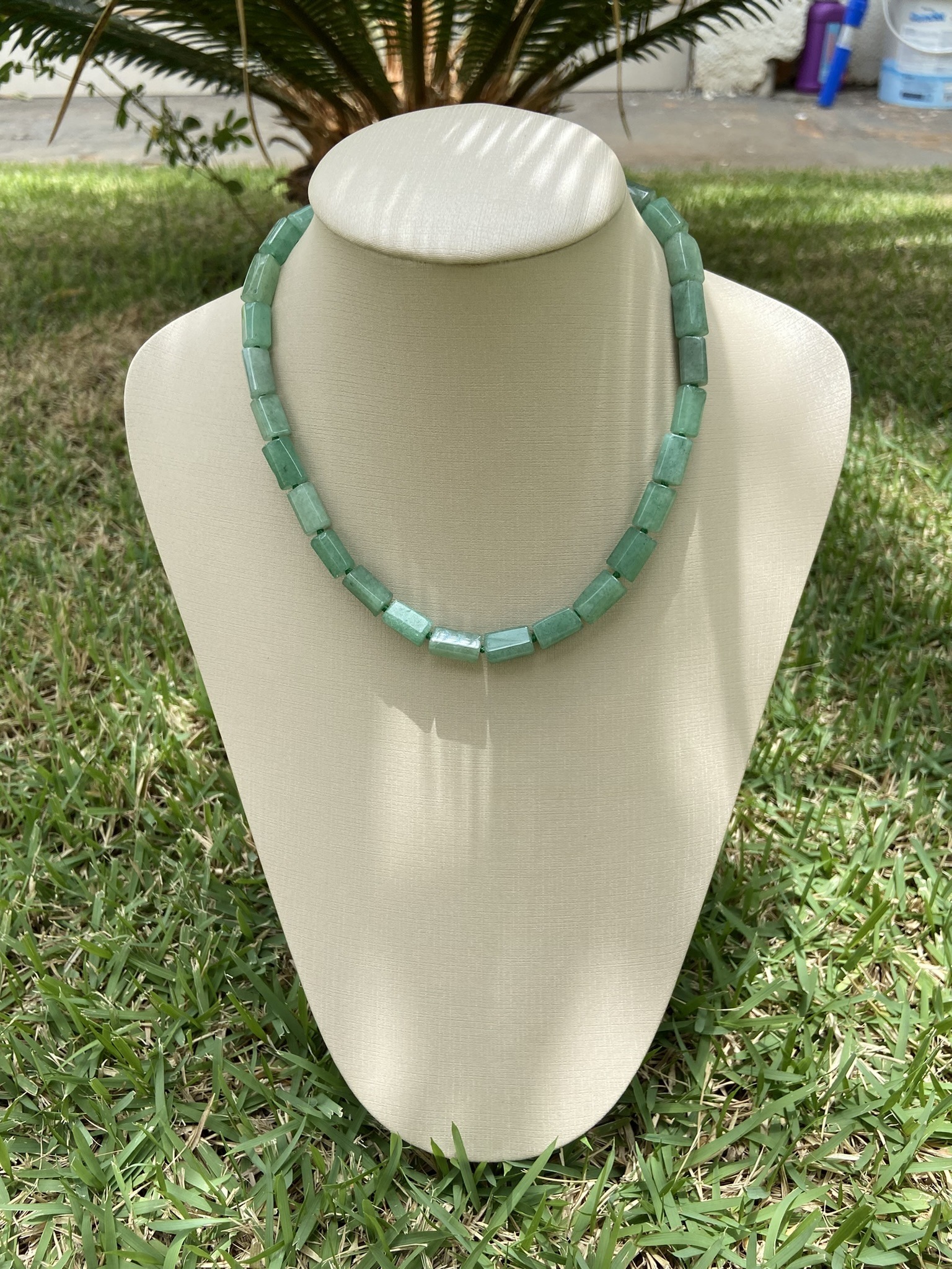 Colar de pedra natural aventurina, banhado a ouro18k.