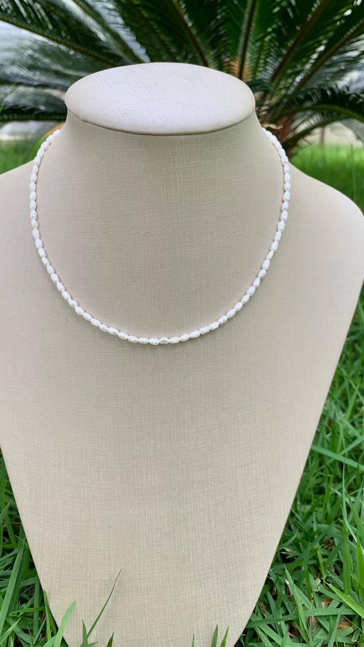 Colar de pérola natural, com fecho banhado a ouro18k.