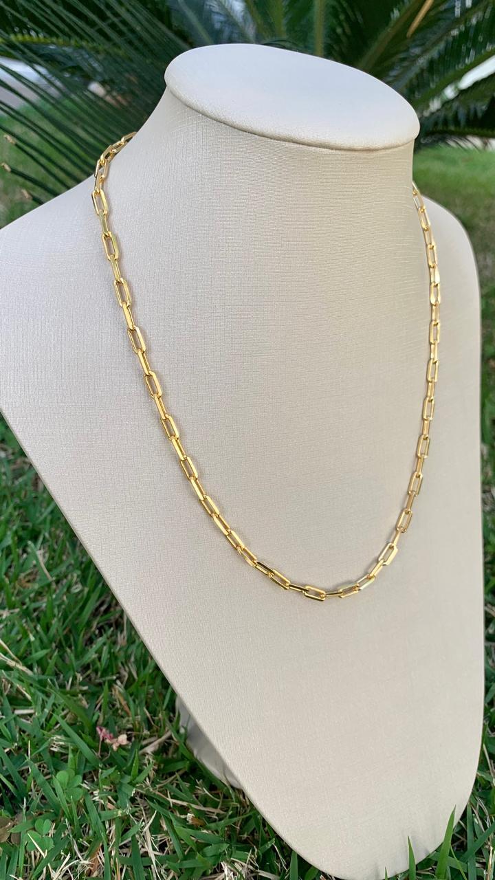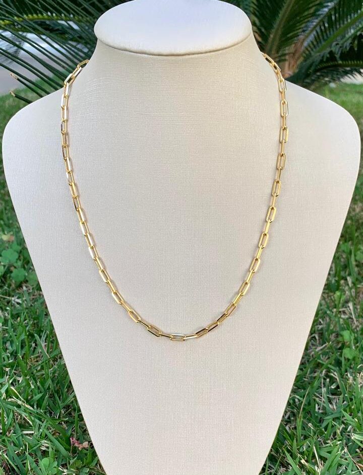 Colar elos, com 45cm de comprimento, banhado a ouro 18k.