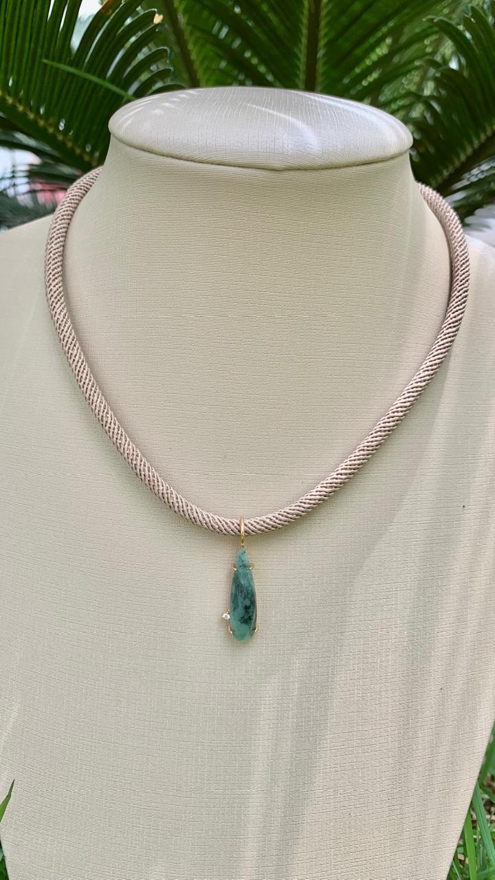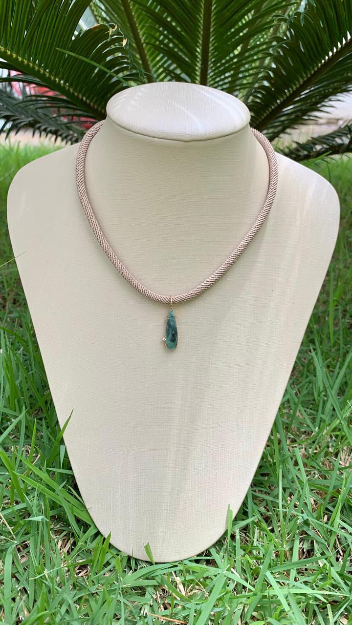 Colar fio com pingente gota alongada de pedra natural esmeralda, banhado a ouro18k.