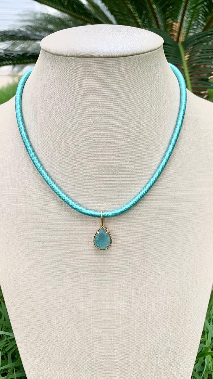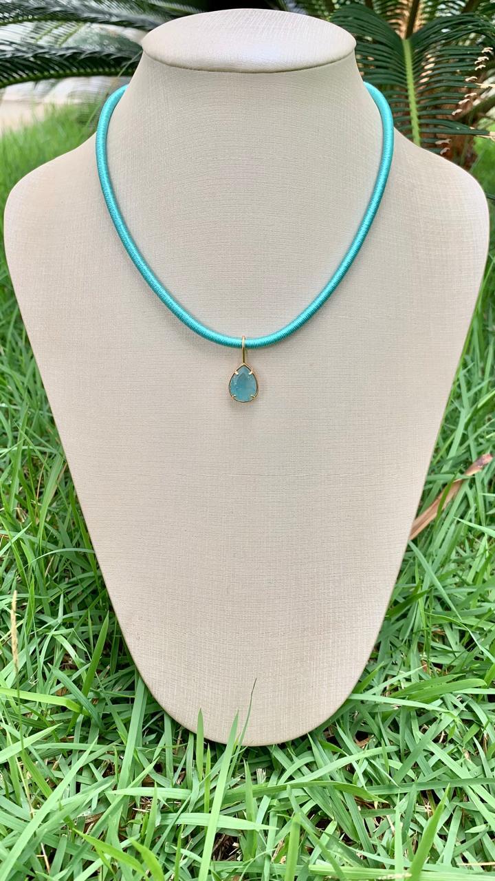 Colar fio de seda com gota topázio sky, banhado a ouro18k.