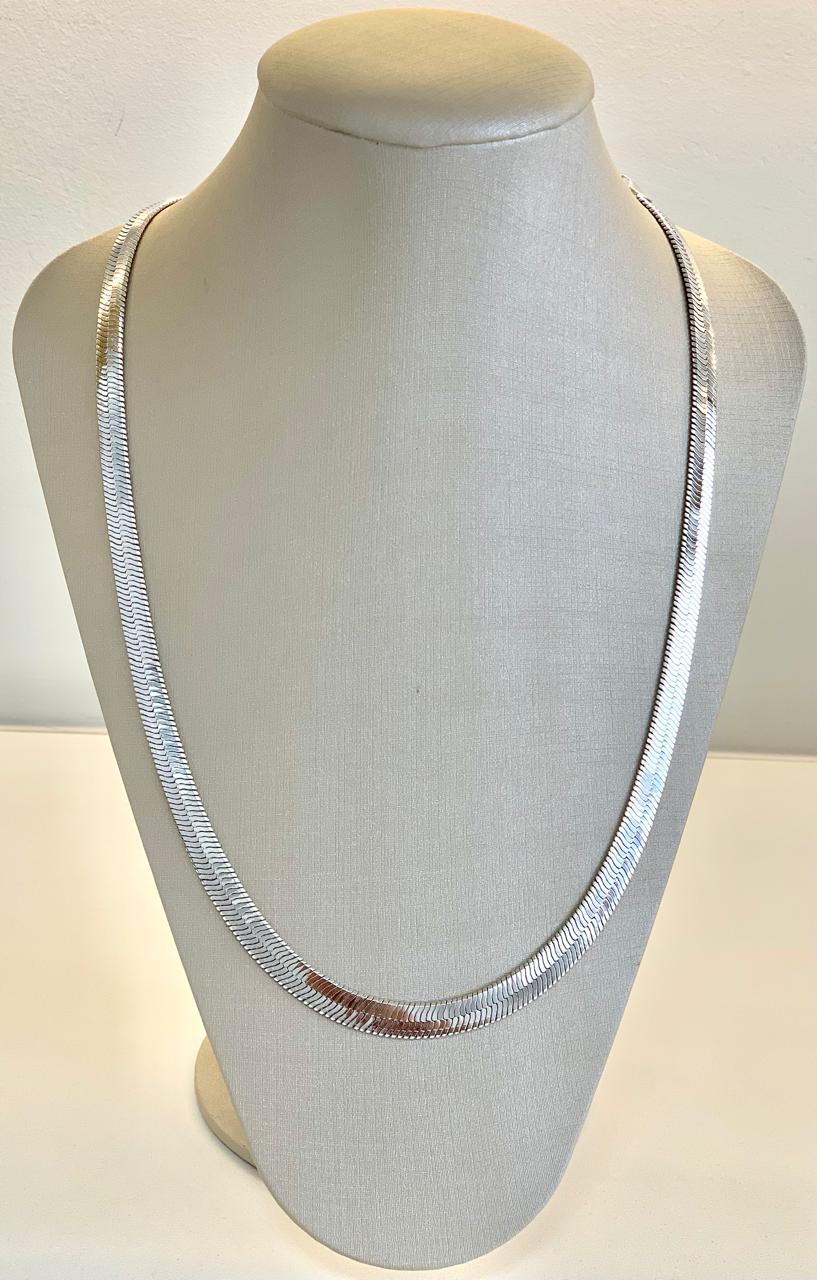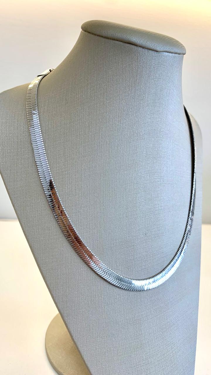 Colar fita com 45cm de comprimento em ródio branco.