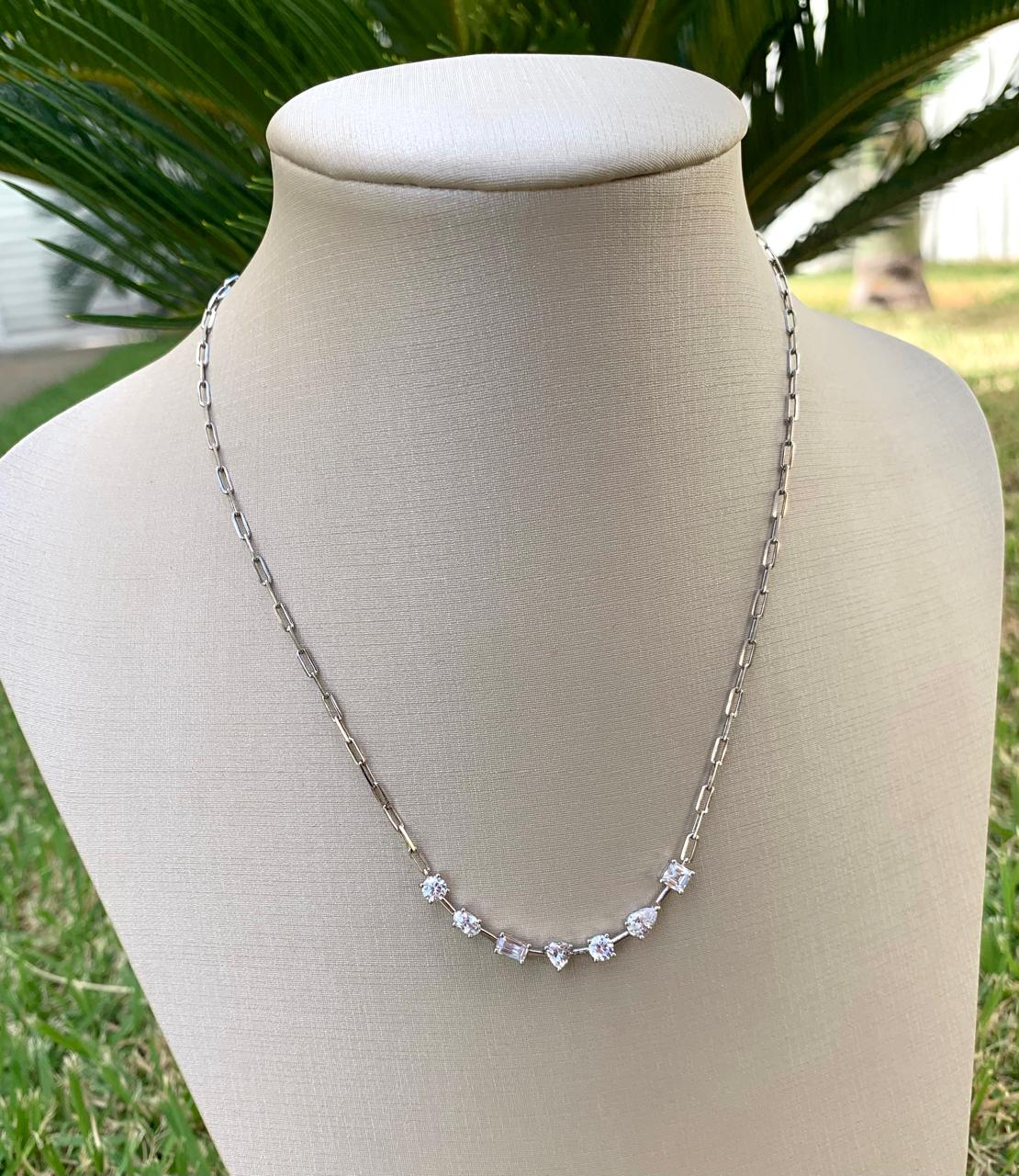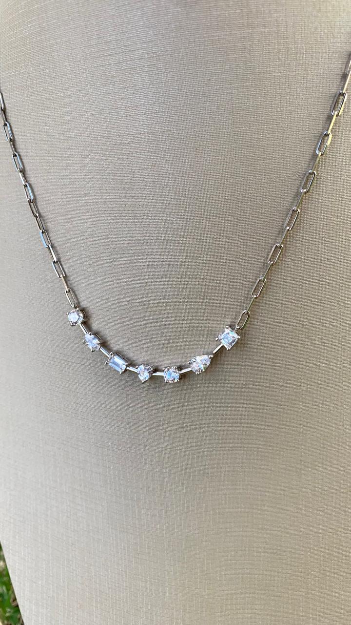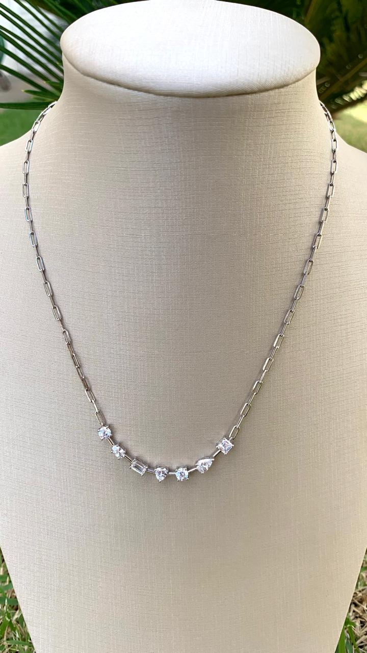Colar formas em prata 925, com zircônias e corrente de elos.