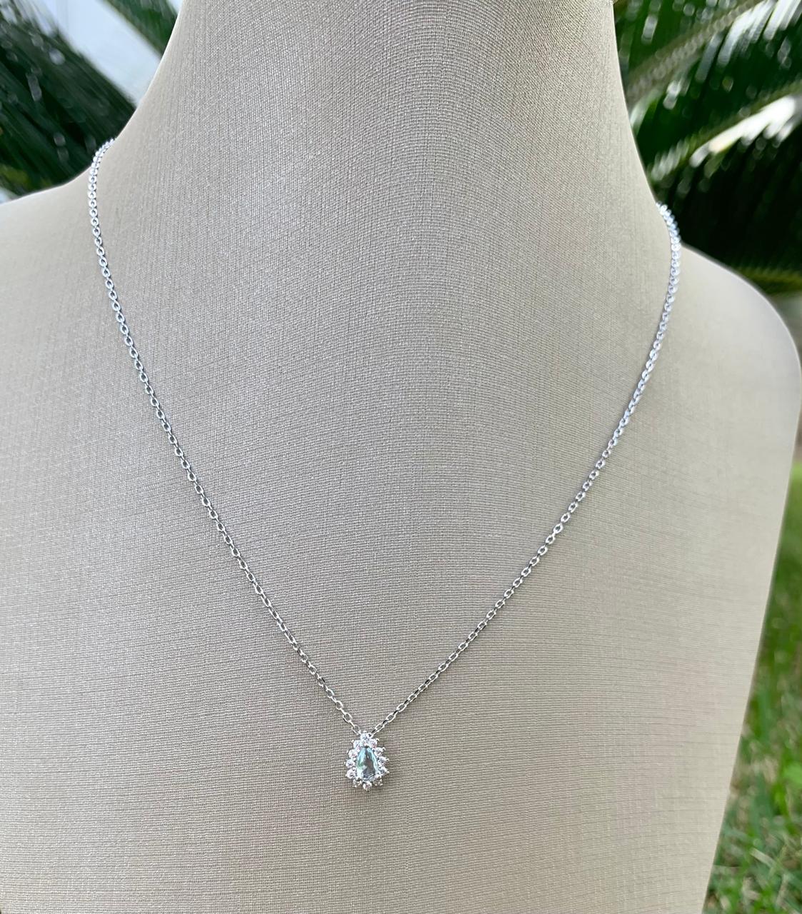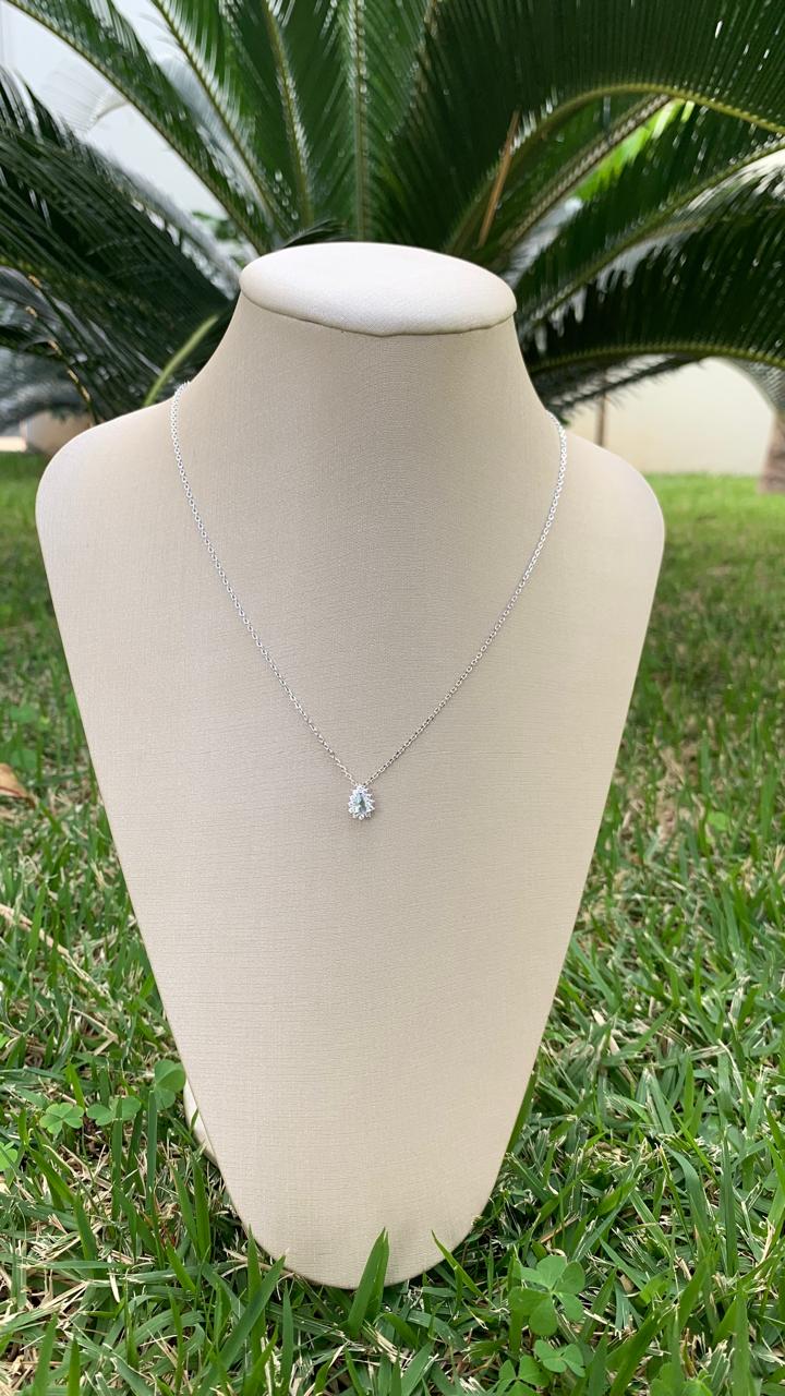 Colar gota água marinha, cravejada com zircônias em prata 925.